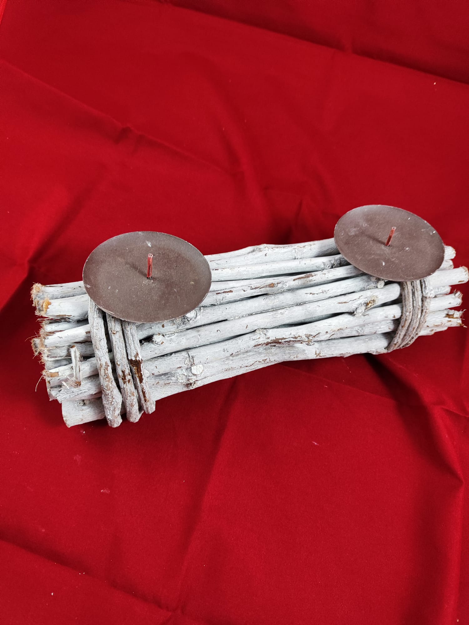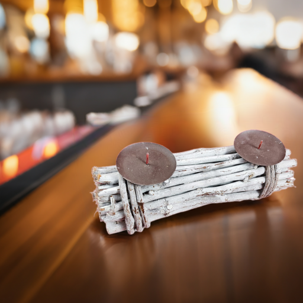 2er Kerzenhalter aus Holz/ Stumpenkerzen