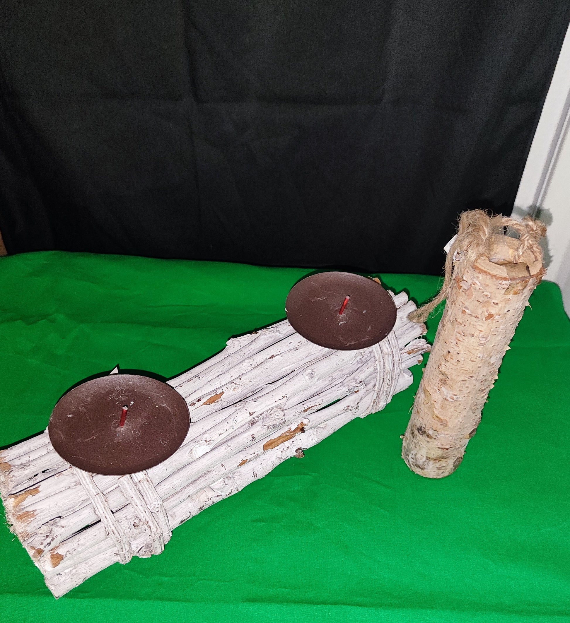 2er Set Kerzenhalter/ Blumenvase aus Holz mit Reagenzglas