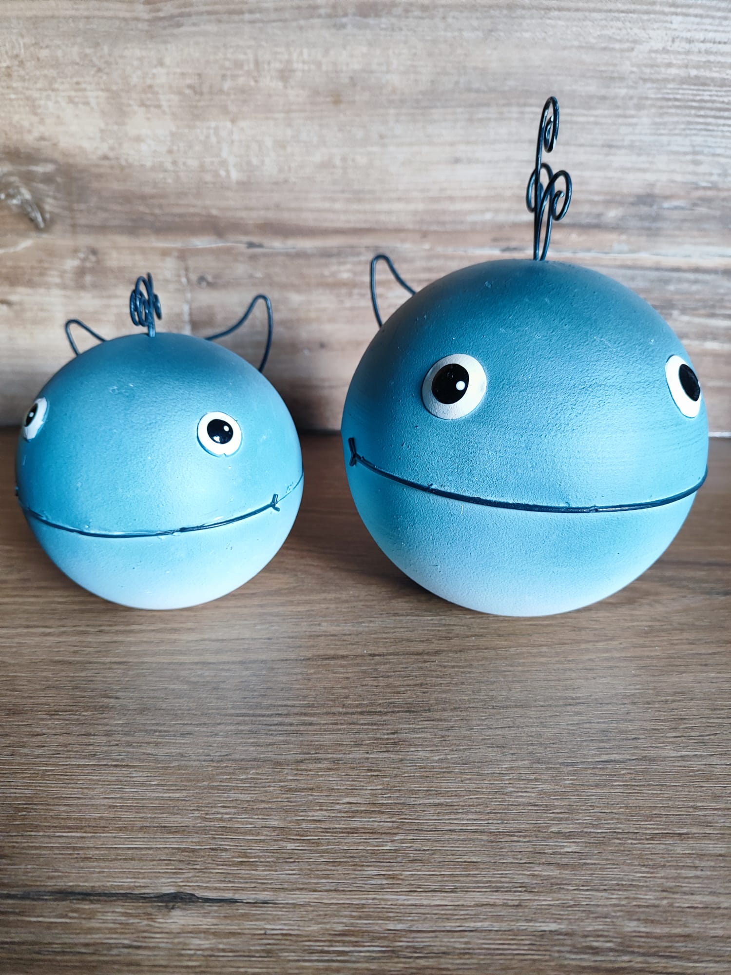 Das 2er Set Metall Fische in runder Form besticht durch sein tolles Design und maritime Ausstrahlung. Die dekorativen Figuren sind vielseitig einsetzbar und eignen sich ideal für alle Zimmer. Hergestellt in Deutschland aus Metall in verschiedenen Blautönen, bringen die Fische mit einer Höhe von 19 cm und 13 cm einen Hauch von Frische und Lebendigkeit in Ihr Zuhause. Perfekt für Garten- oder Tierliebhaber und als stilvolle Ergänzung zu jeder modernen Einrichtung.