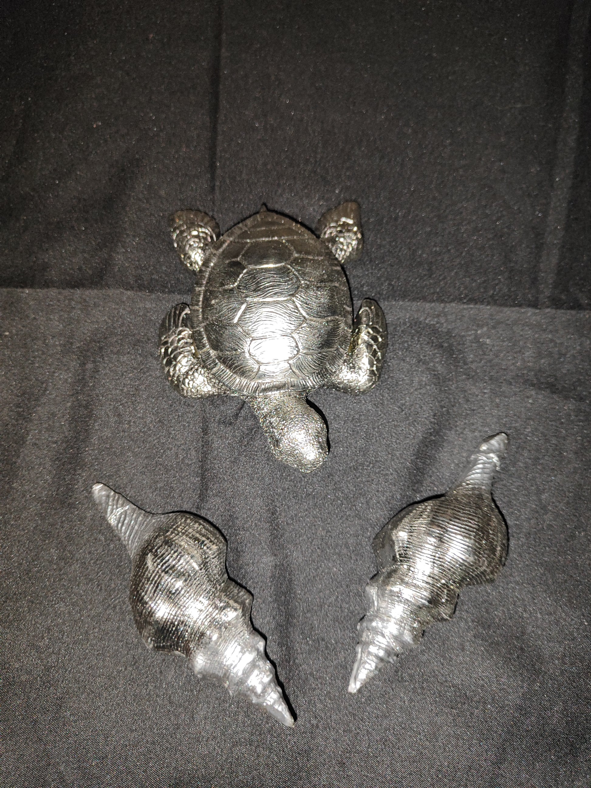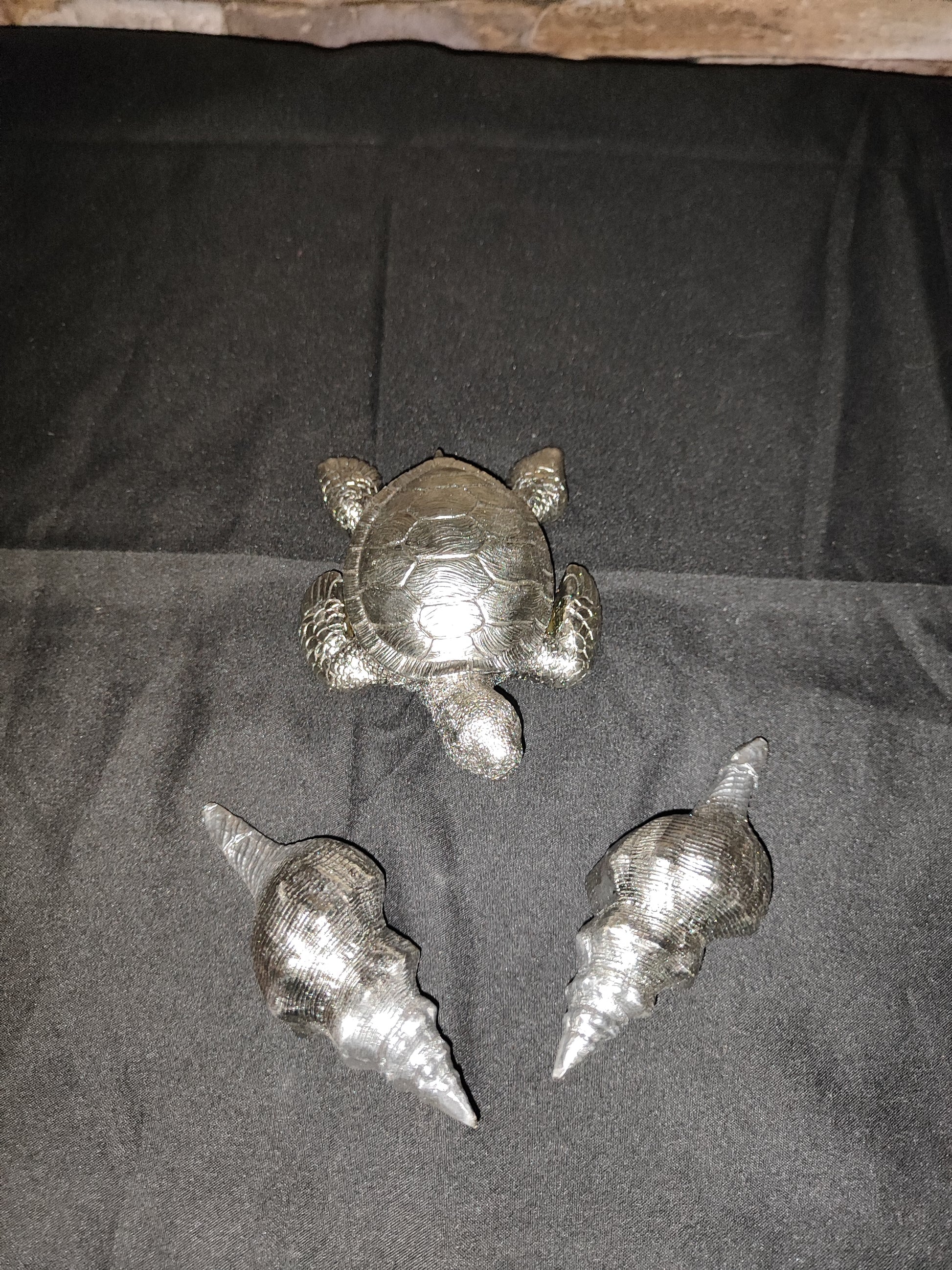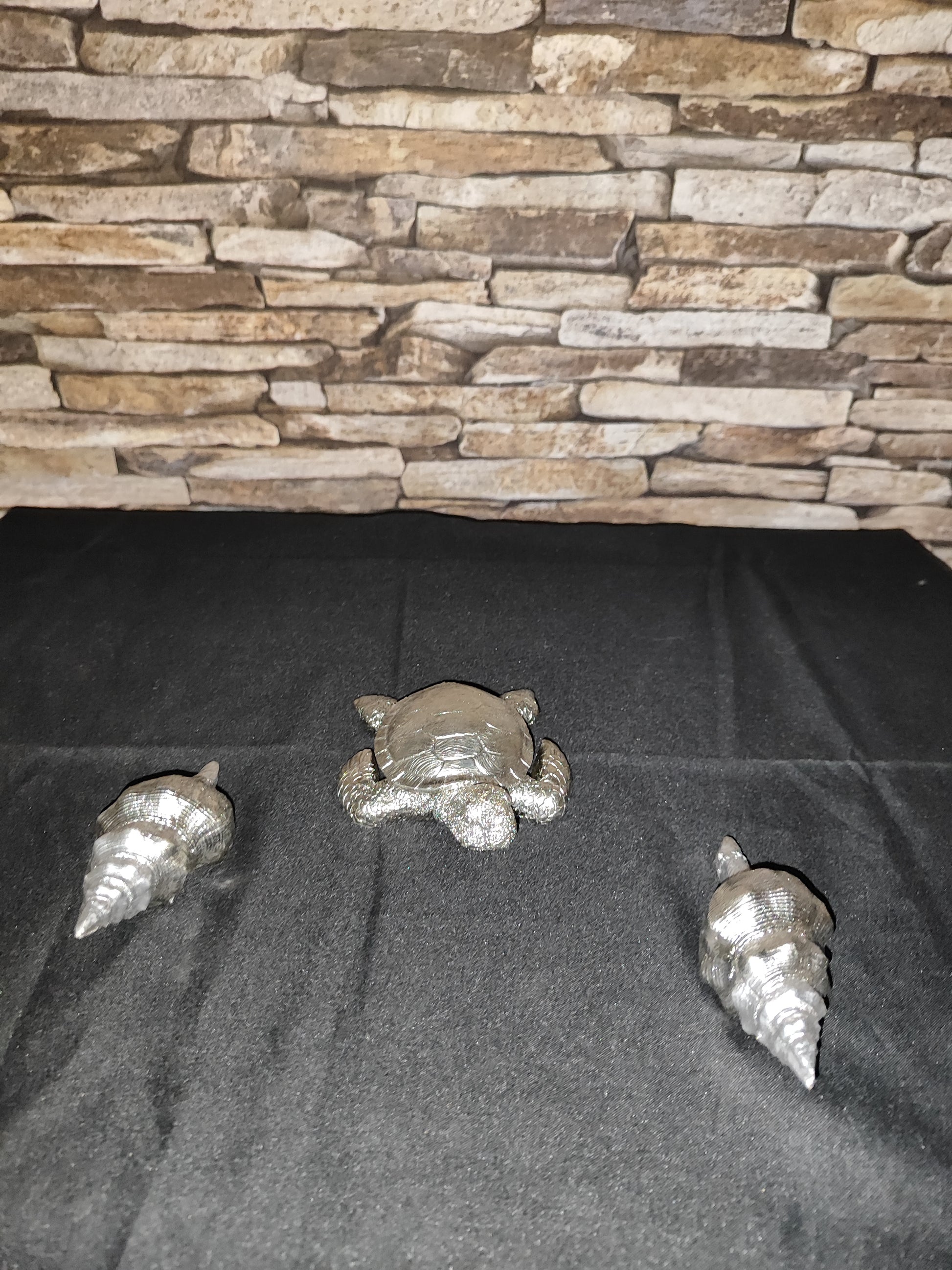3 teiliges Maritim Set/ Schildkröte und Muscheln/ Silber/ Poly,Metallische Optik Schildkröte ca. 3,5 cm/ Muscheln ca. 3 cm