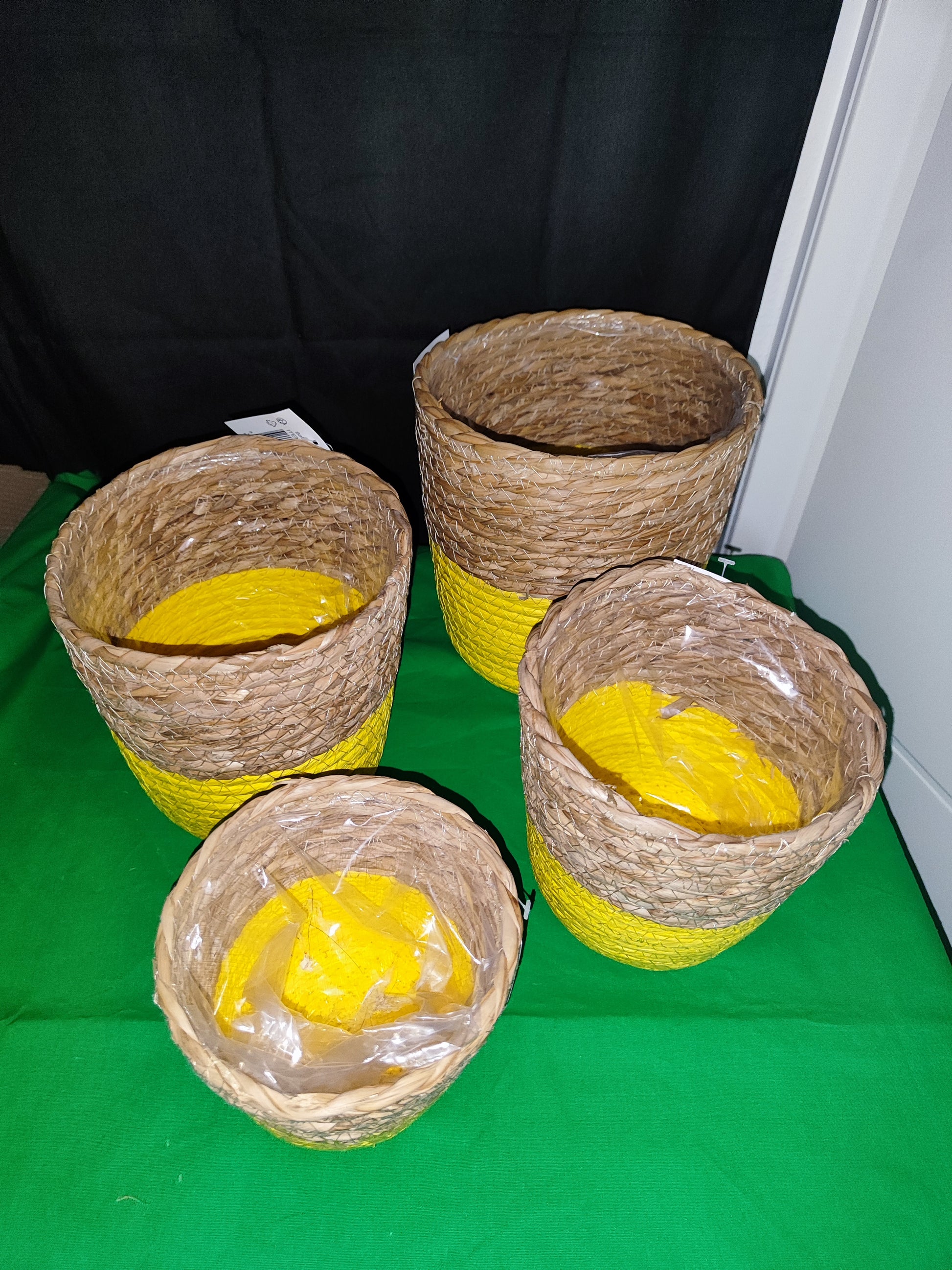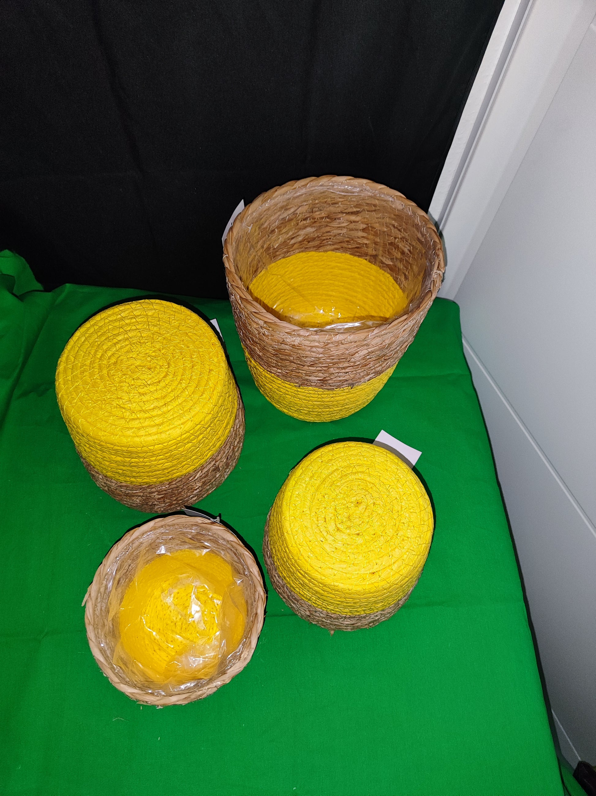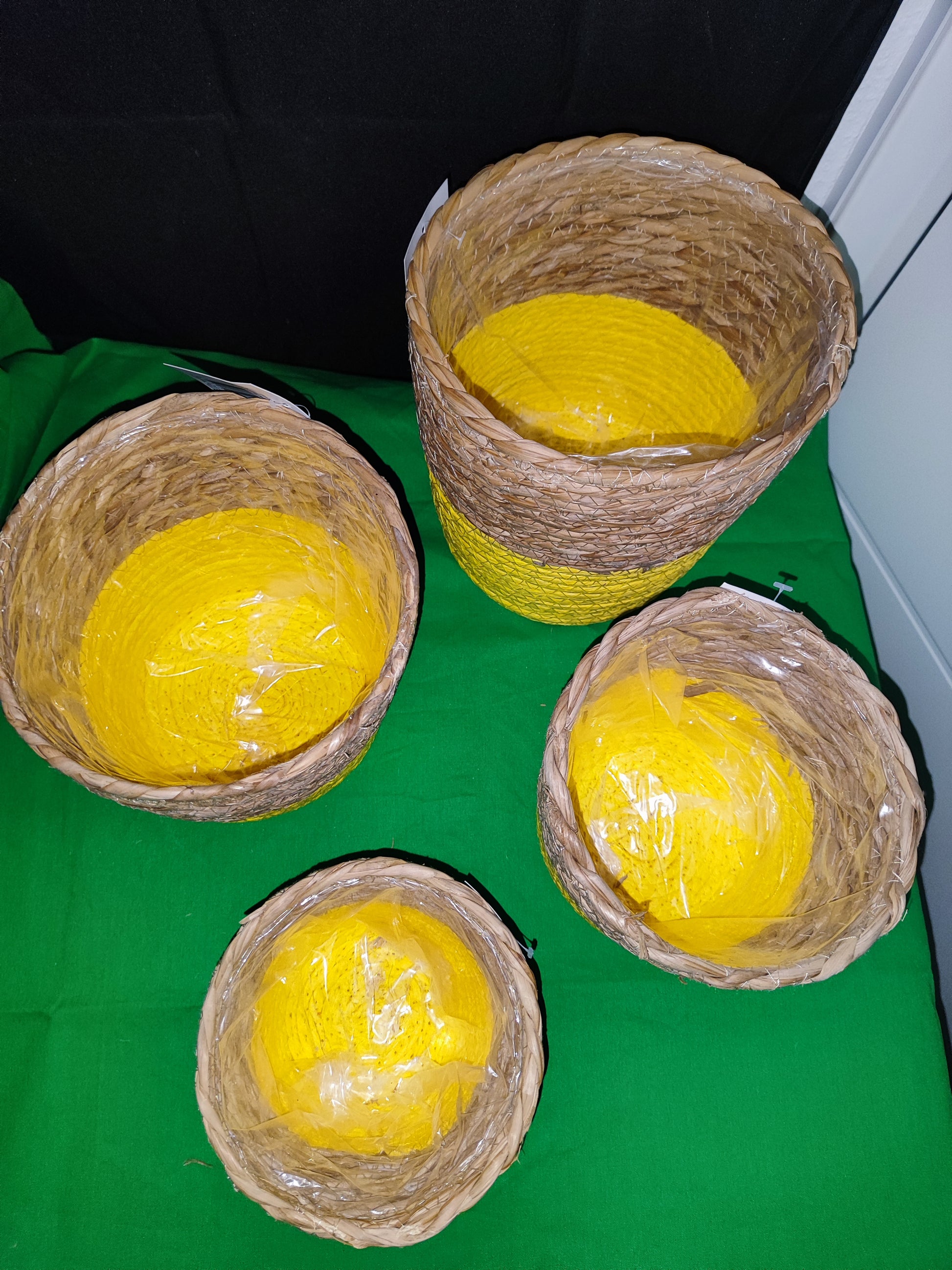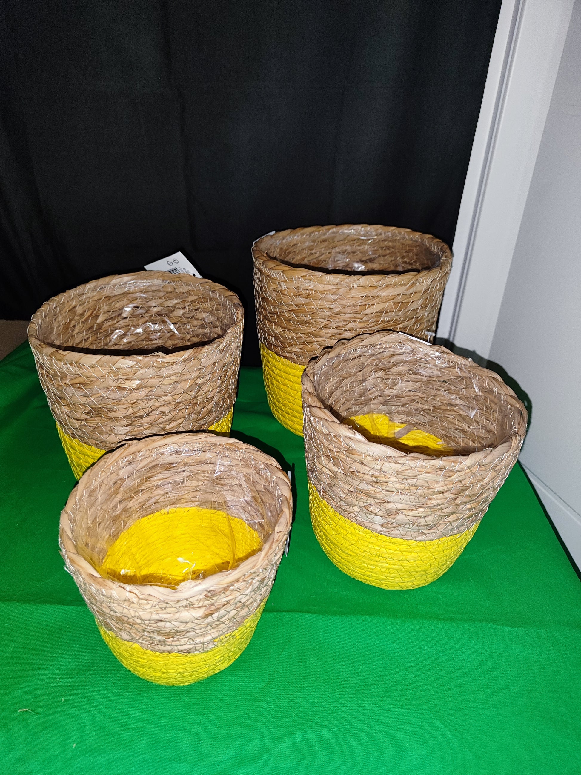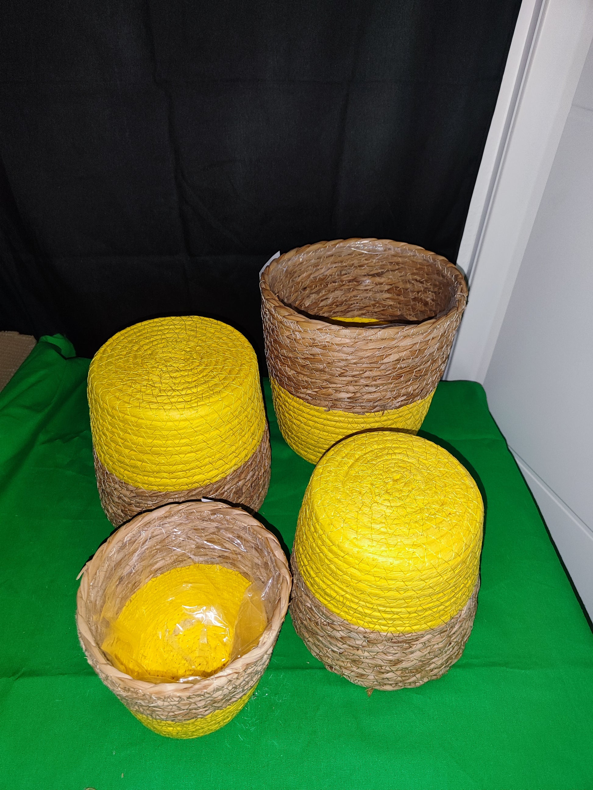 4er Set Pflanzkörbe, Naturprodukt, Gelb