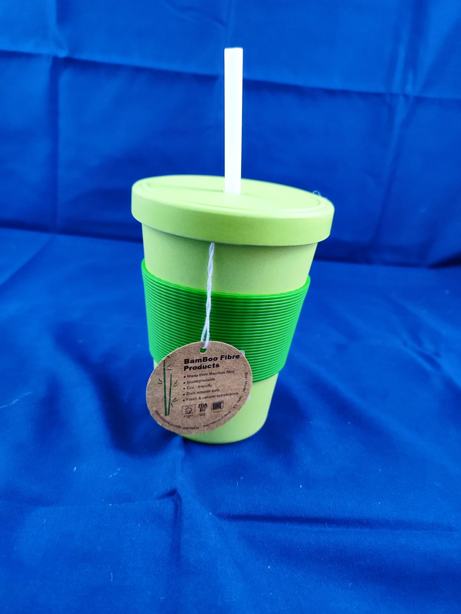 Restposten 15 x Bambusbecher mit Strohhalm 400ml