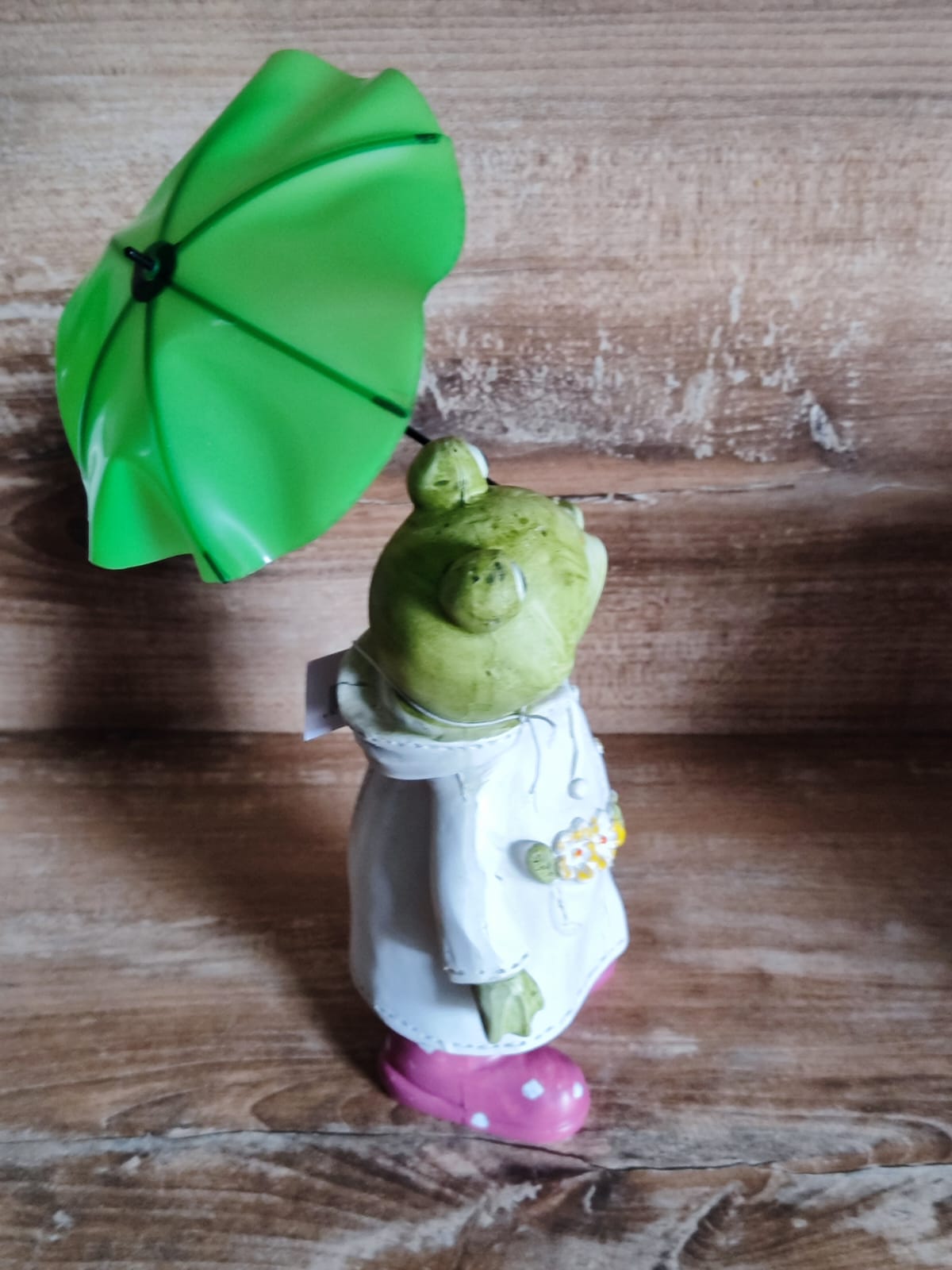 Deko-Frosch Gerda mit Regenschirm/ Polyresin/ Mantel/