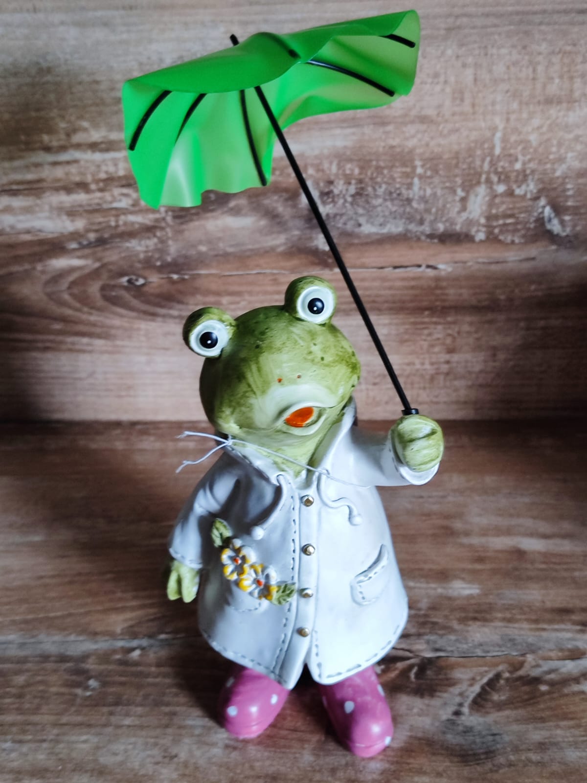 Dekorativer Frosch mit Regenschirm aus Polyresin, ideal für Herbstdekorationen. Die modern gestaltete Figur ist ca. 22 cm hoch und 12 cm breit, und passt perfekt in jedes Zimmer. Dieses farbenfrohe Mittelstück der Marke Seyko ist ein Blickfang für besondere Anlässe und schafft eine fröhliche Atmosphäre in Ihrem Zuhause.