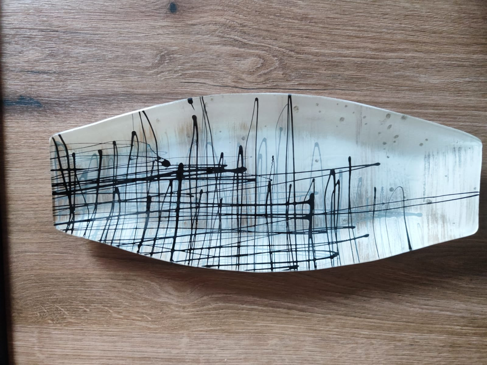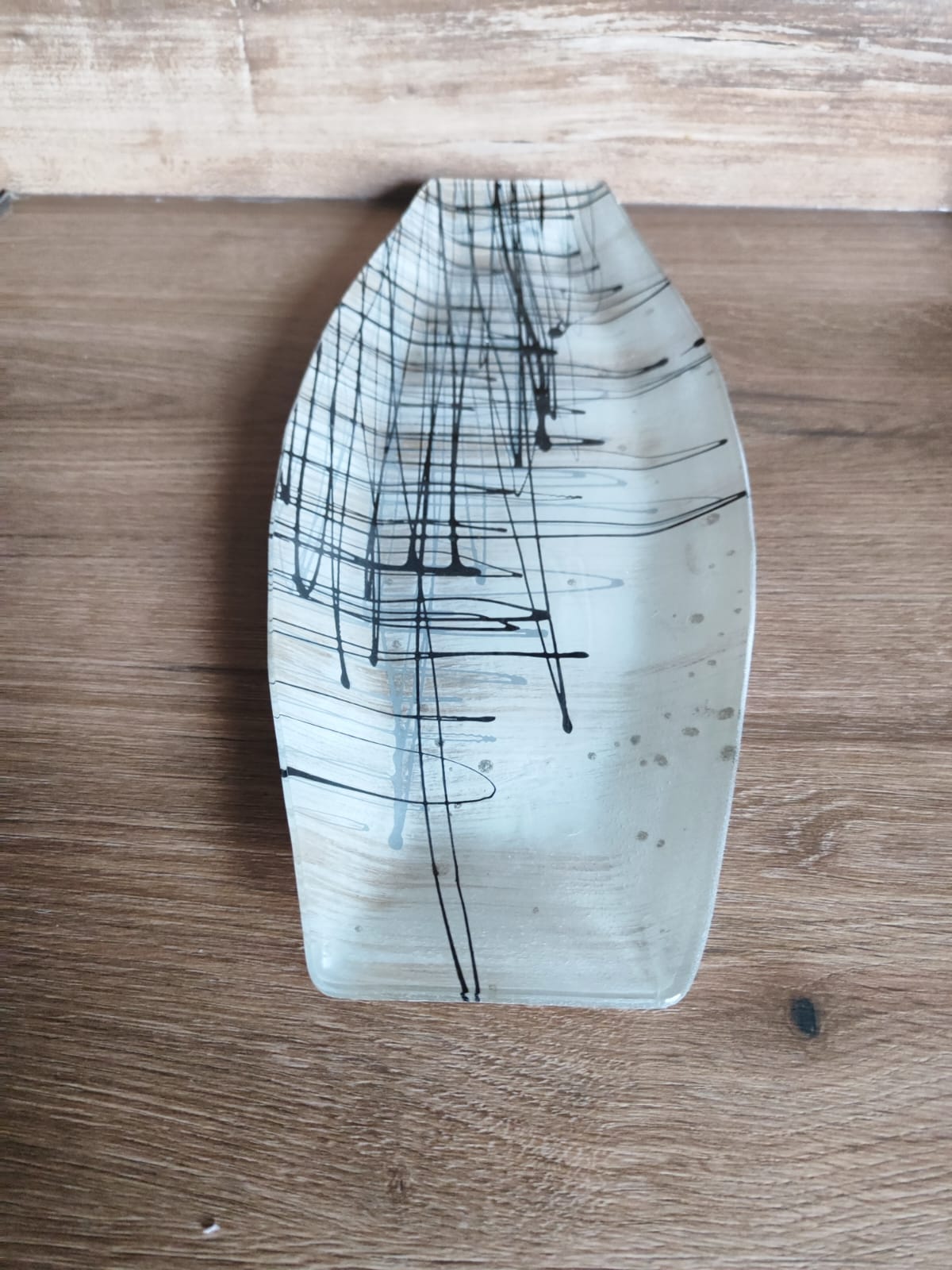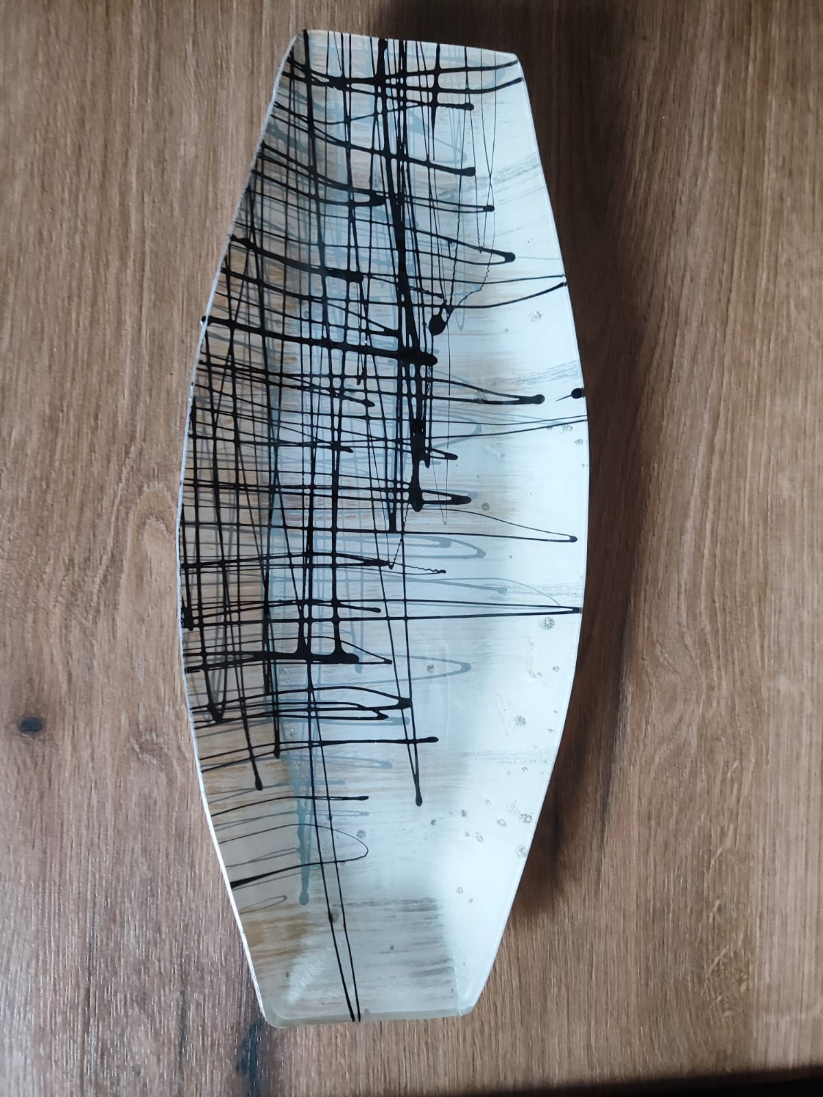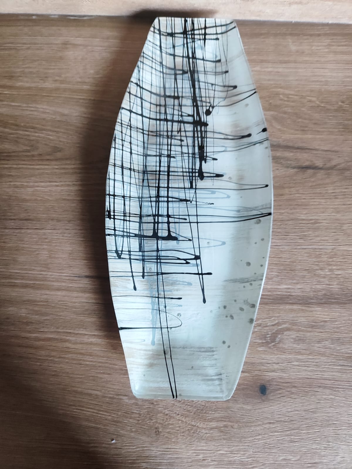 Glasplatte/Oval/"Abstraktikus"/44cm/ Streifenmuster/ Obst/Bonbons
