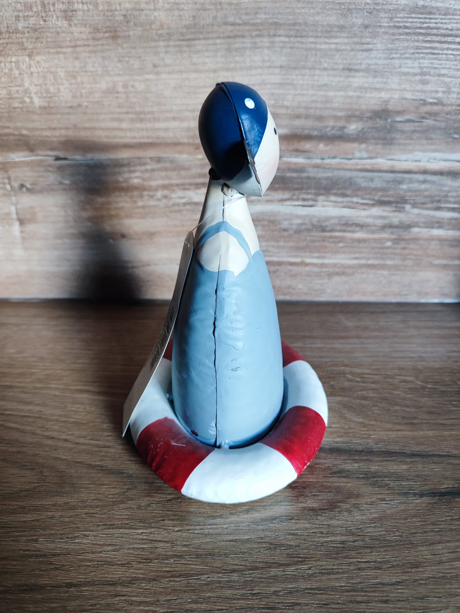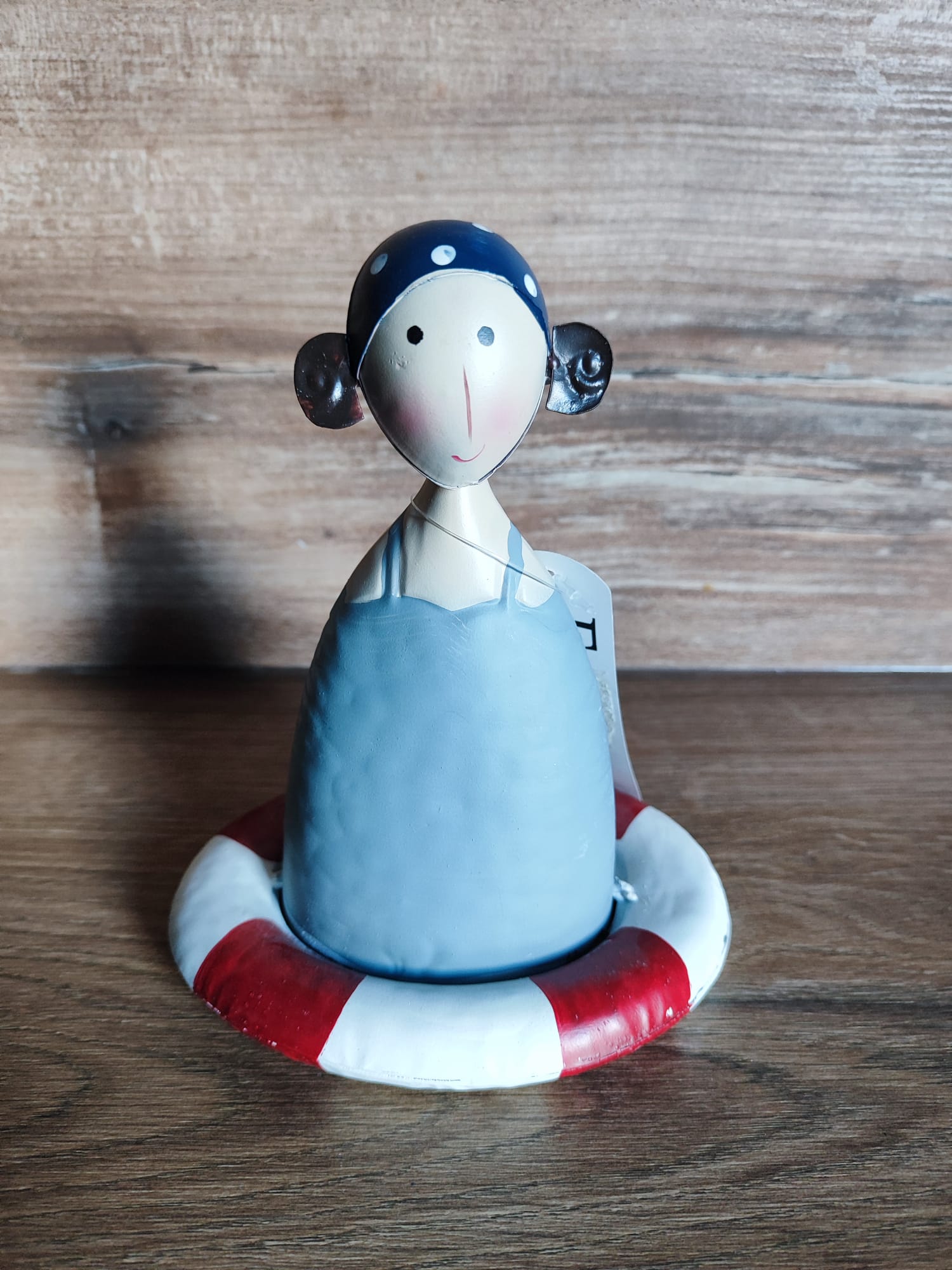 Matrosin \"Schwimmerin\" ist eine dekorative Figur aus Metall mit einem modernen und maritimen Stil. Die ca. 18cm hohe und 15cm breite Kegelform macht sie zu einem einzigartigen Blickfang im Badezimmer oder Esszimmer. Das bemalte Motiv der Matrosin verleiht der Figur eine lebhafte und charmante Ausstrahlung. Perfekt für Liebhaber von maritimer Dekoration und Schwimmerinnen-Charakteren.
