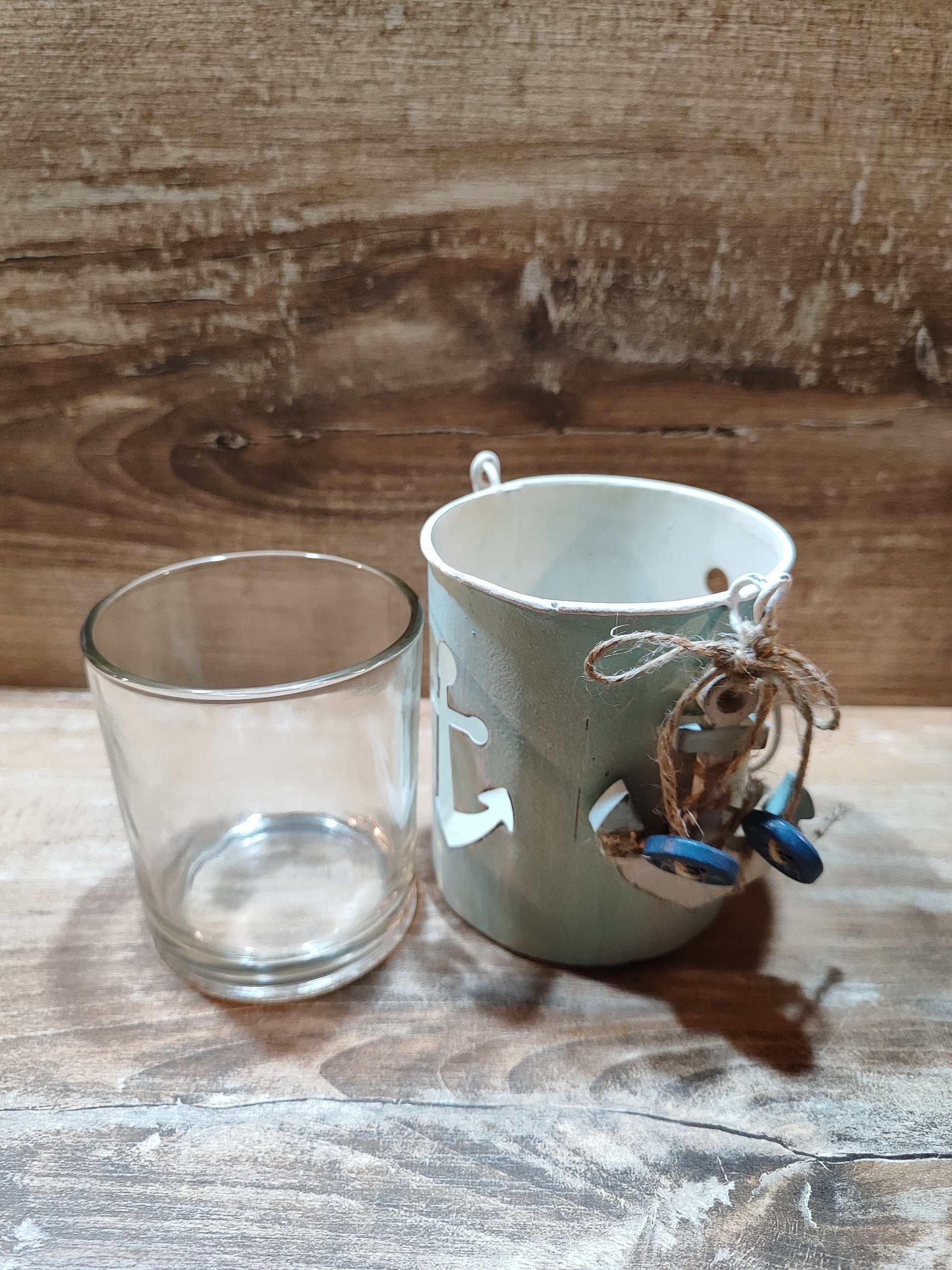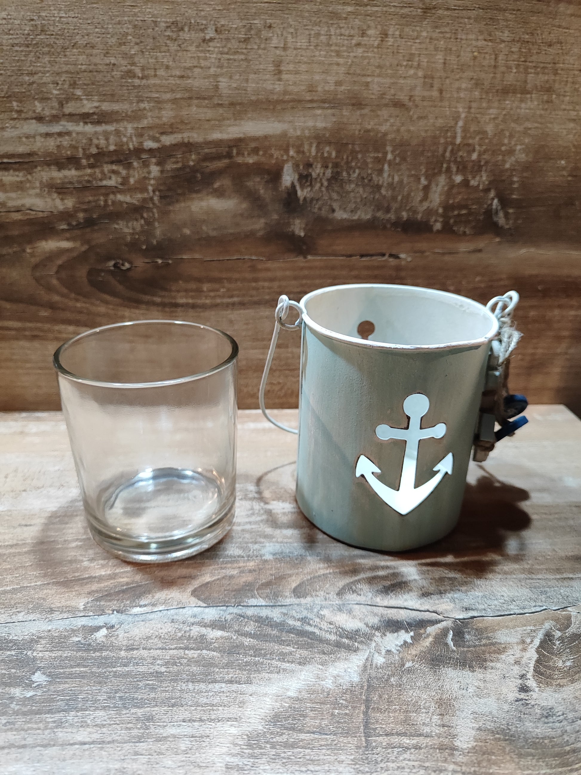 Teelichthalter/Maritim/Glas/Metall/ Ankermotiv mit Anker