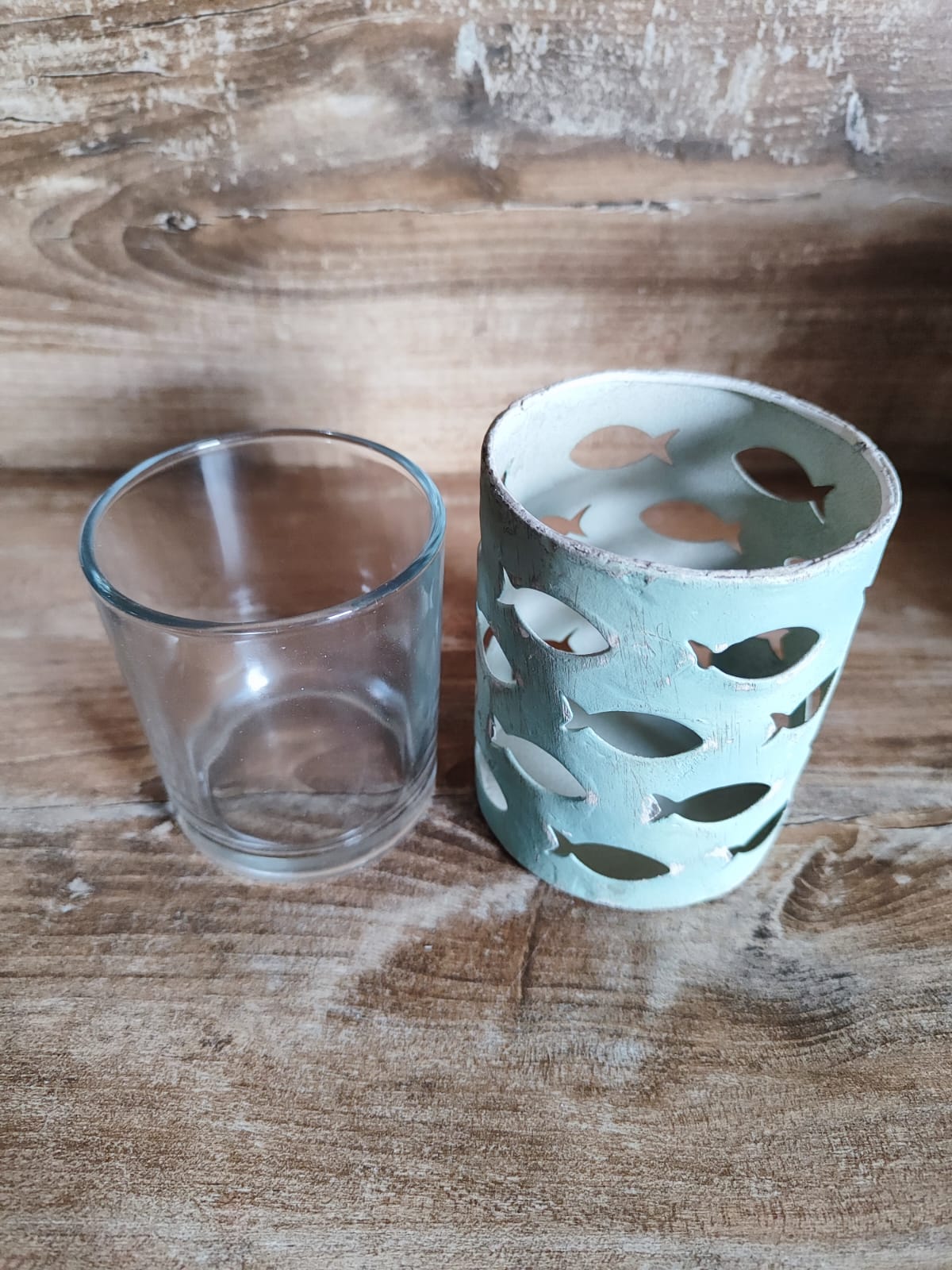 - Teelichthalter/Maritim/Glas/Metall/ Fischmotiv