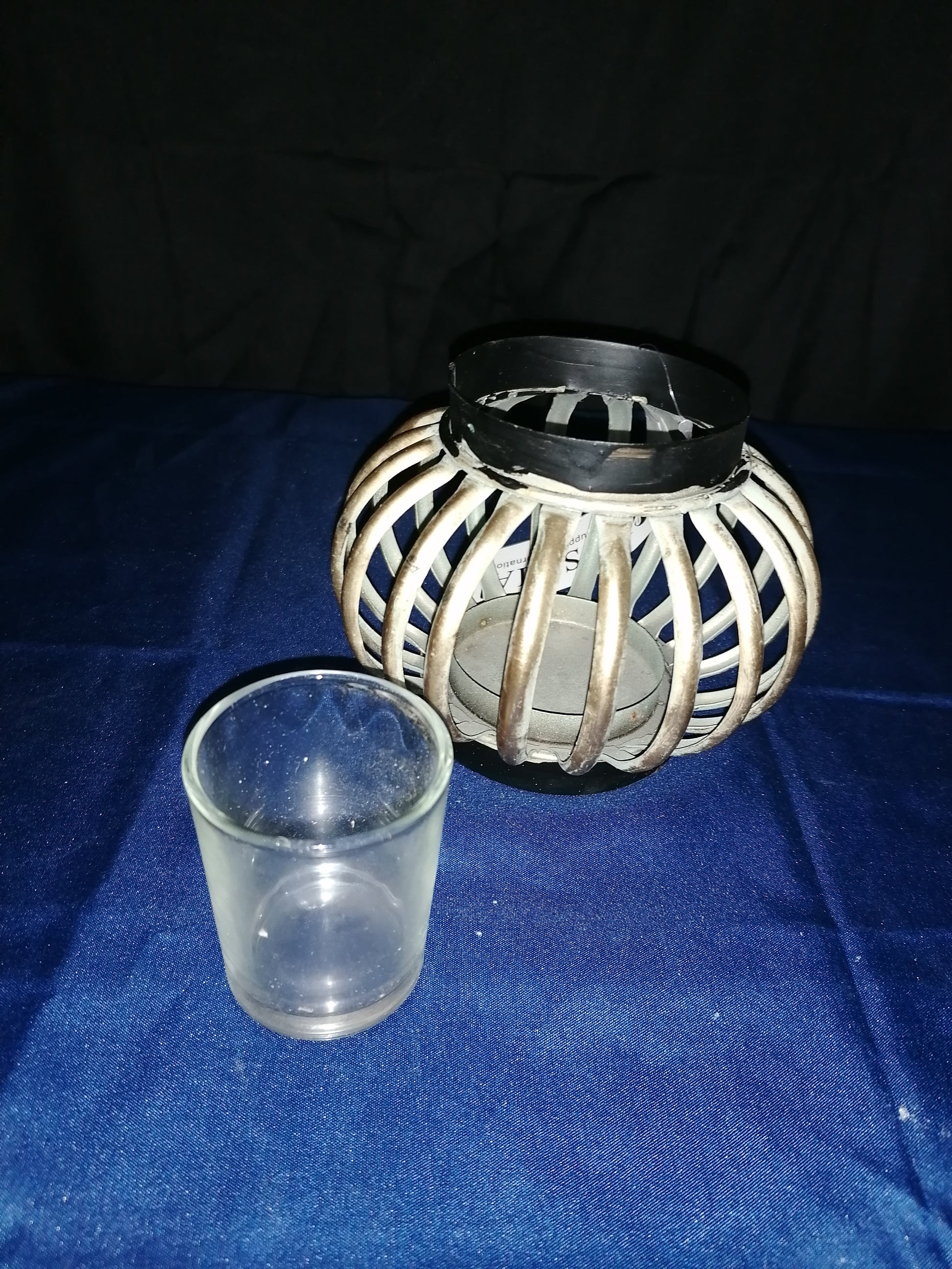 Windlicht/Metalkorb/Teelichtglas/Modern