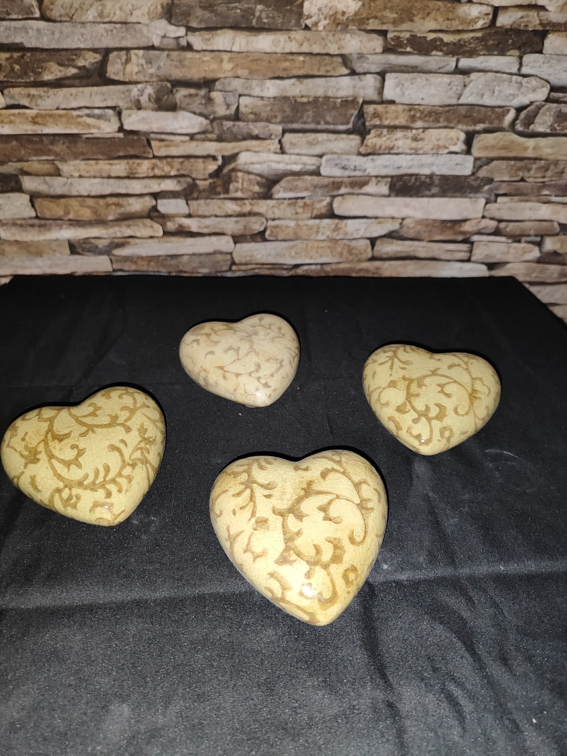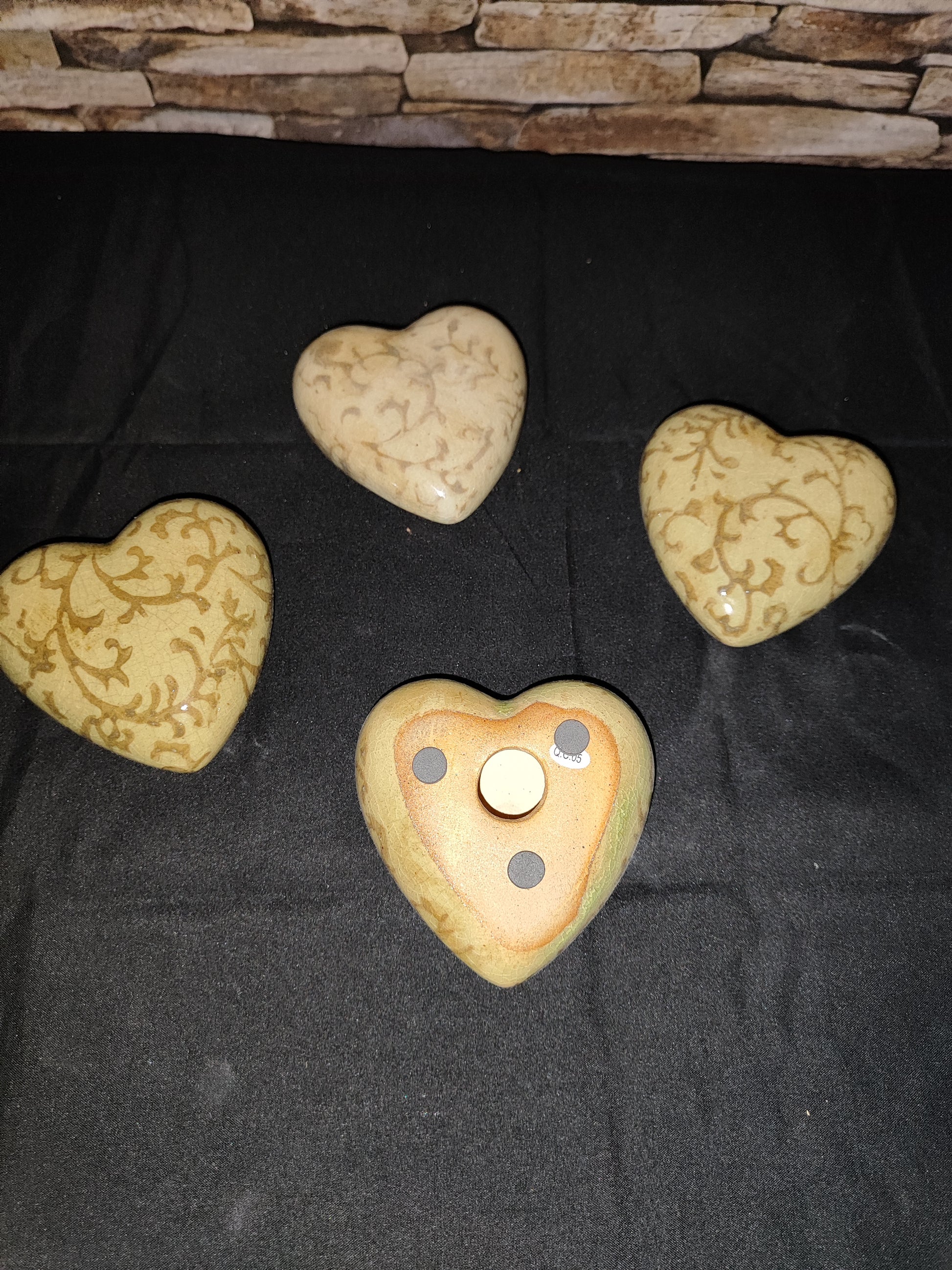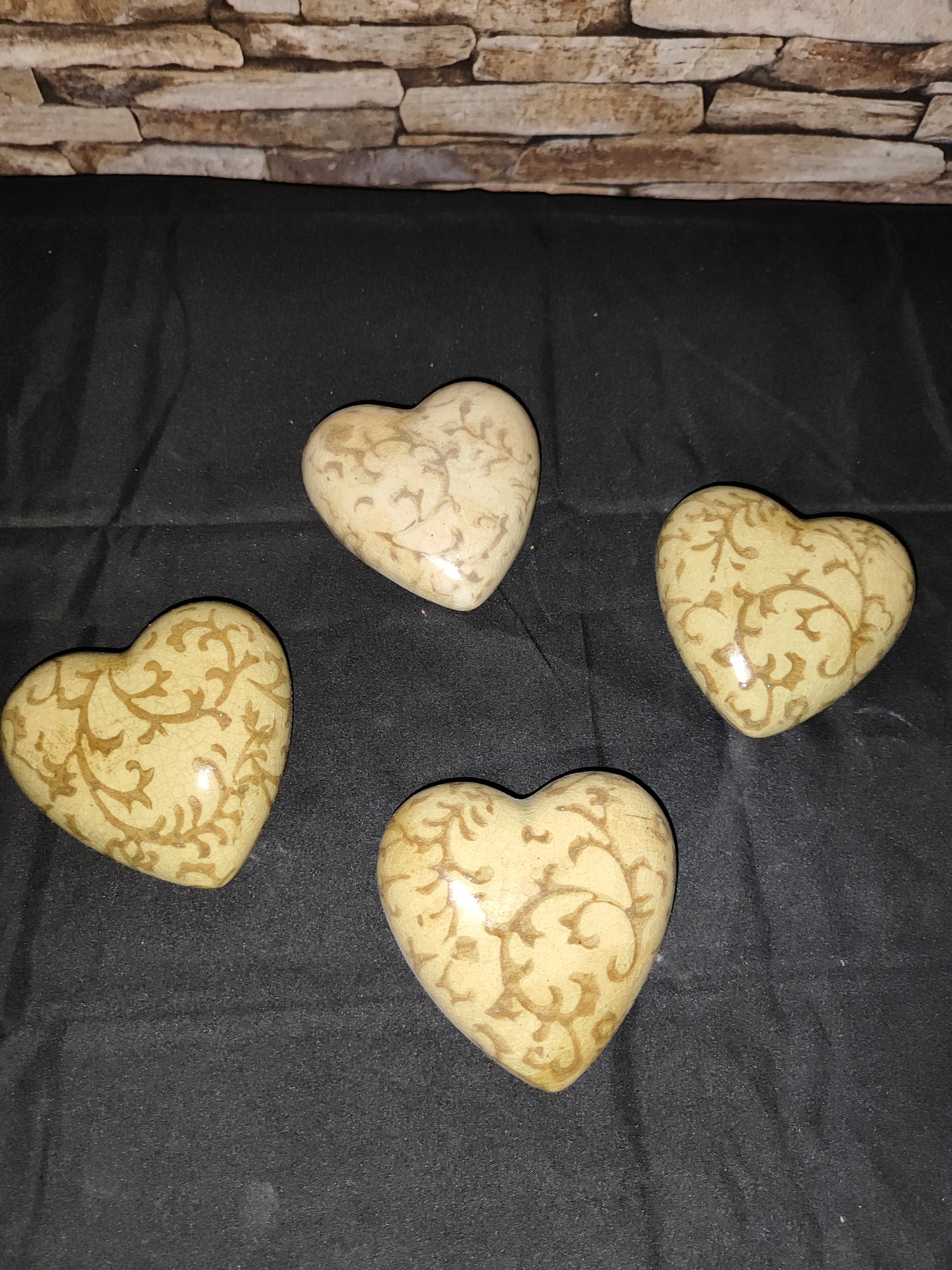 4 Keramik Herzen/Ranke/ Dekoration/ leicht grünlich/ Herzen 9,5 x 9 cm