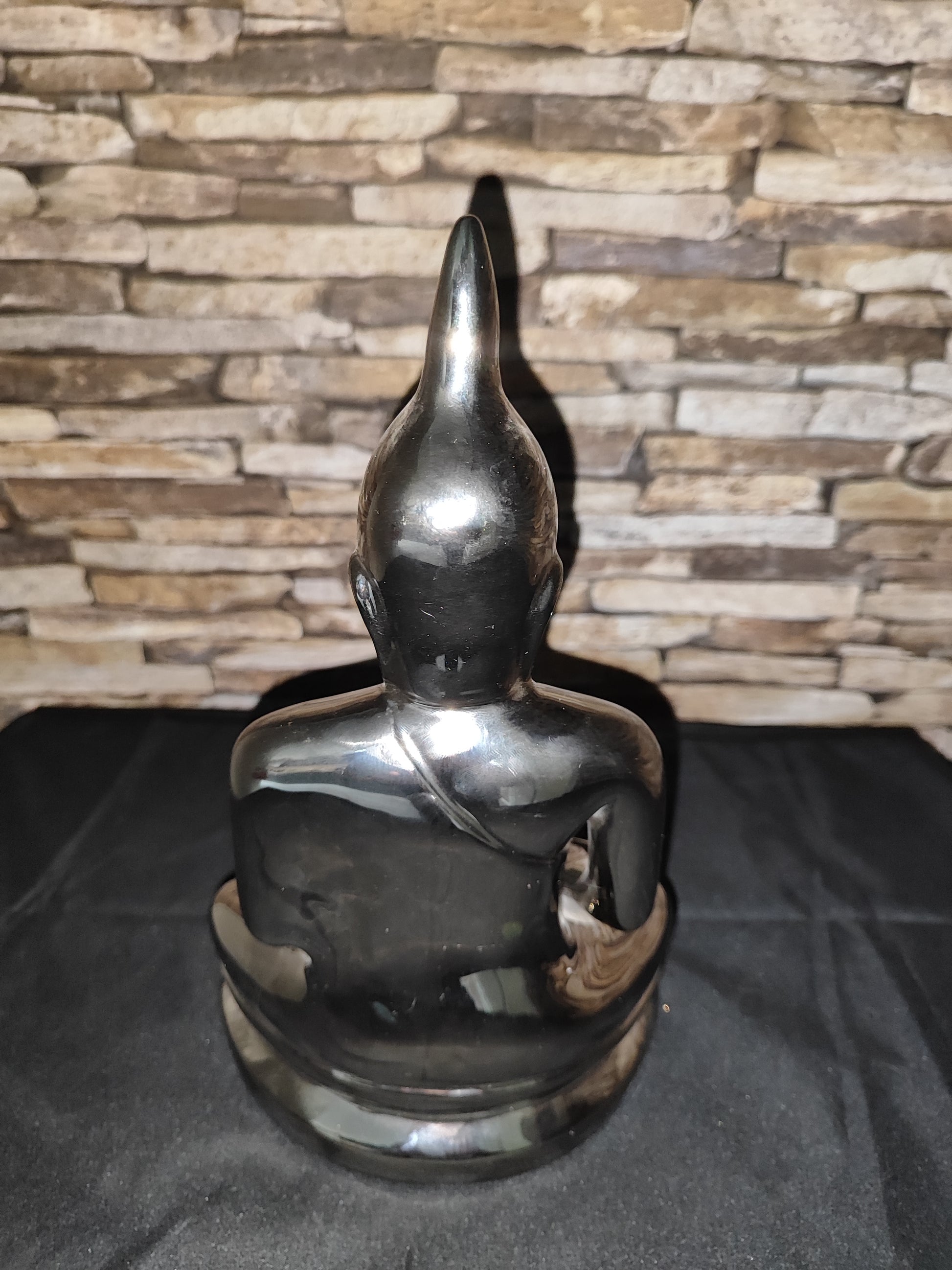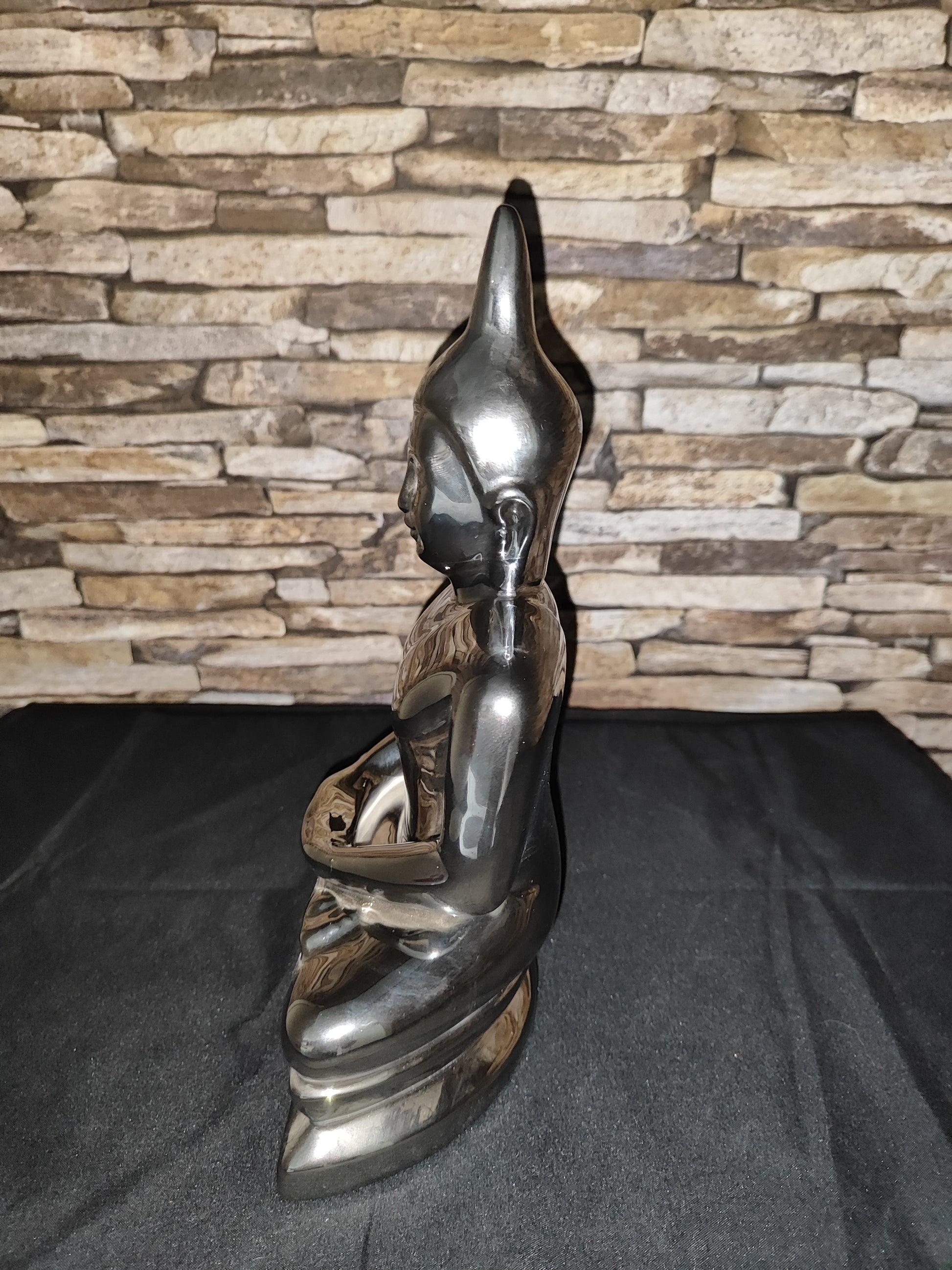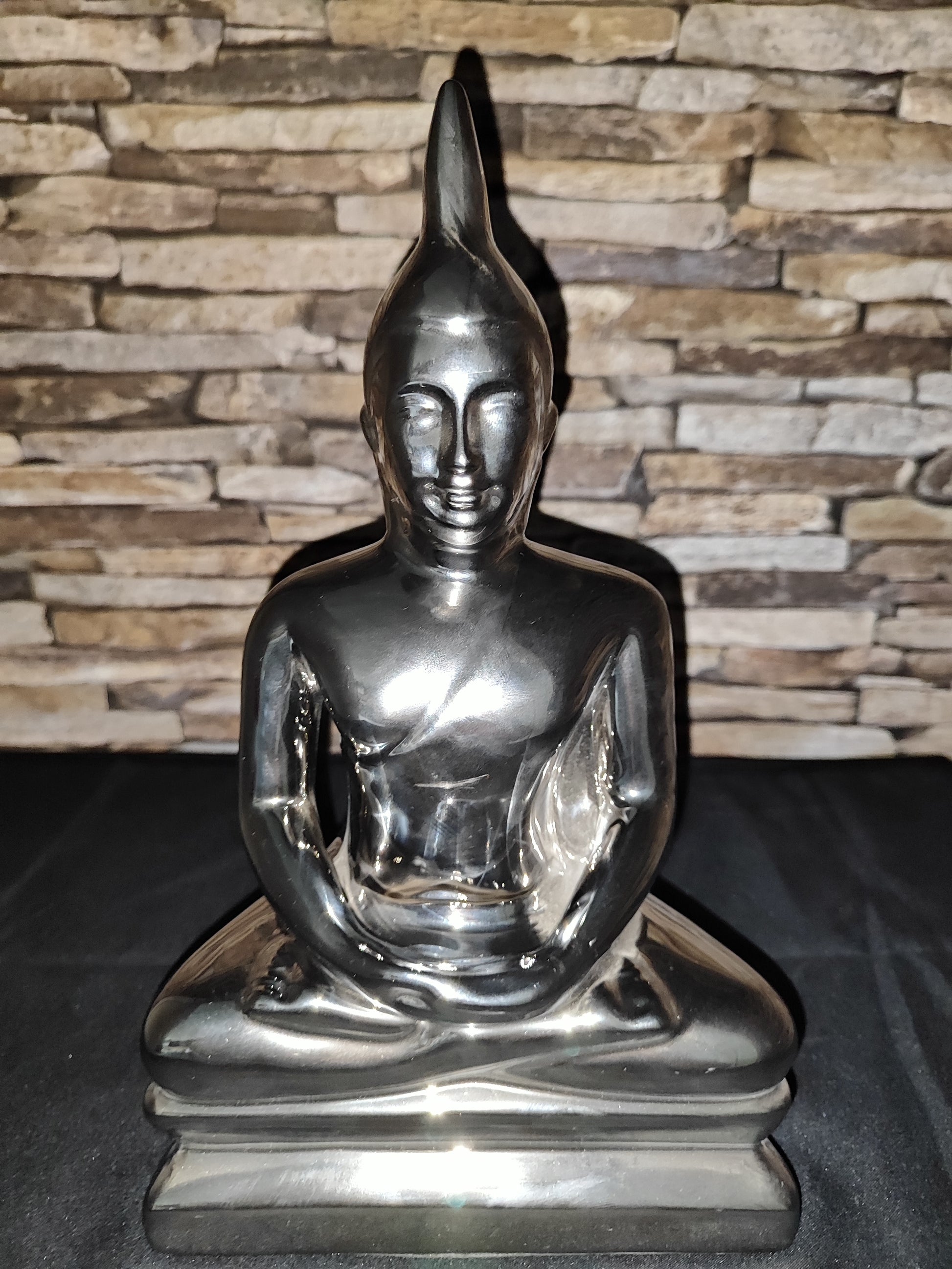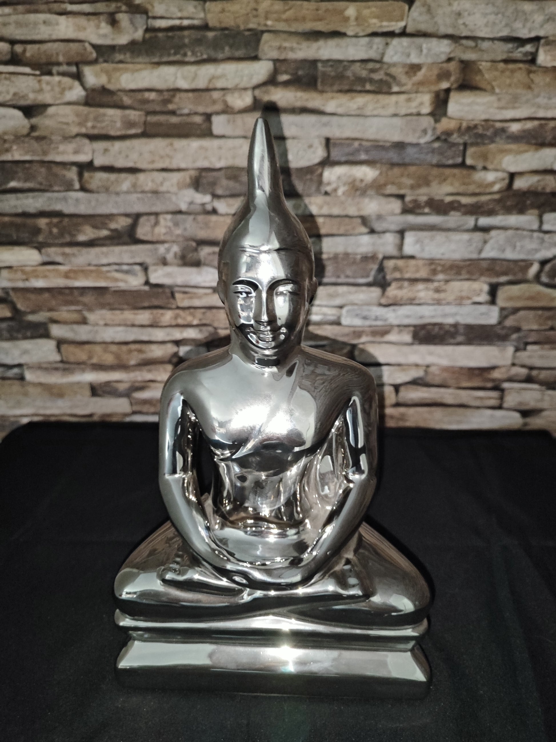 Buddha Sukhothai Lotussitz/ Glaskeramik/Silber 27 cm