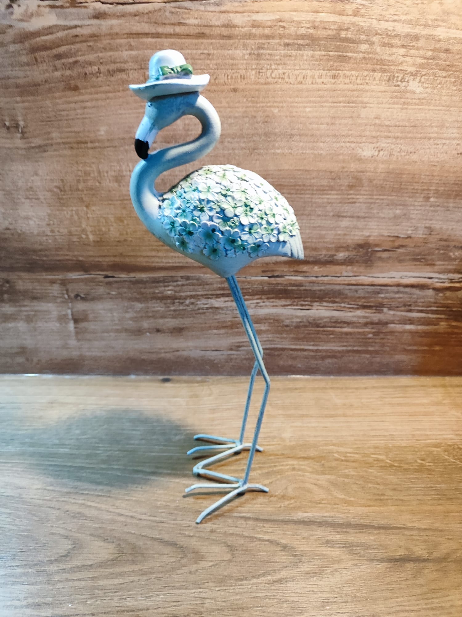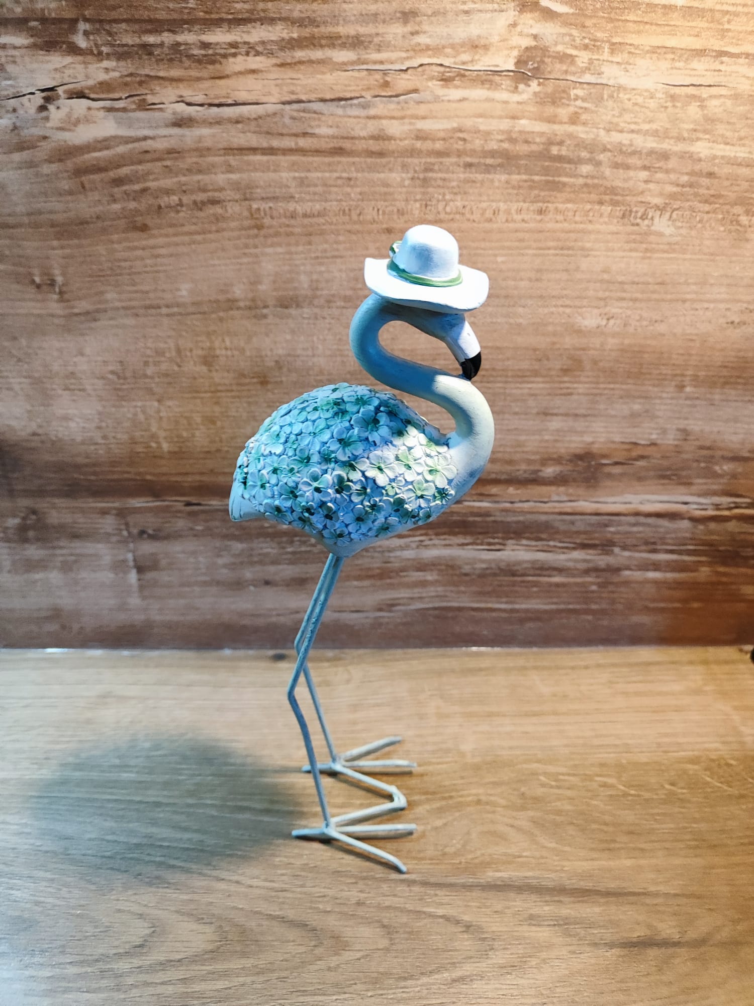 Flamingo mit Hut/patrol/ Blumenkleid/Metall/polyresin/ sehr dekorativ 31,5cm