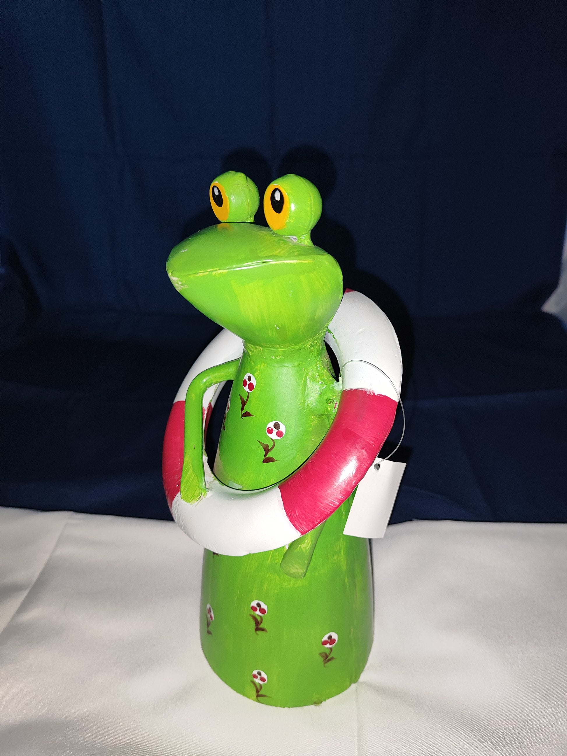 Der charmante Frosch mit Schwimmring von Florissima ist eine moderne und dekorative Figur, perfekt für Gartenliebhaber und Tierfreunde. Mit einer Höhe von ca. 23 cm und einem grünen Metallmaterial ist diese Skulptur ein Blickfang in jedem Außenbereich. Das Motiv und die Form des Frosches machen ihn zu einem einzigartigen Dekorationsstück, das eine fröhliche Atmosphäre schafft. Ideal für die Verschönerung Ihres Gartens oder Wohnbereichs.