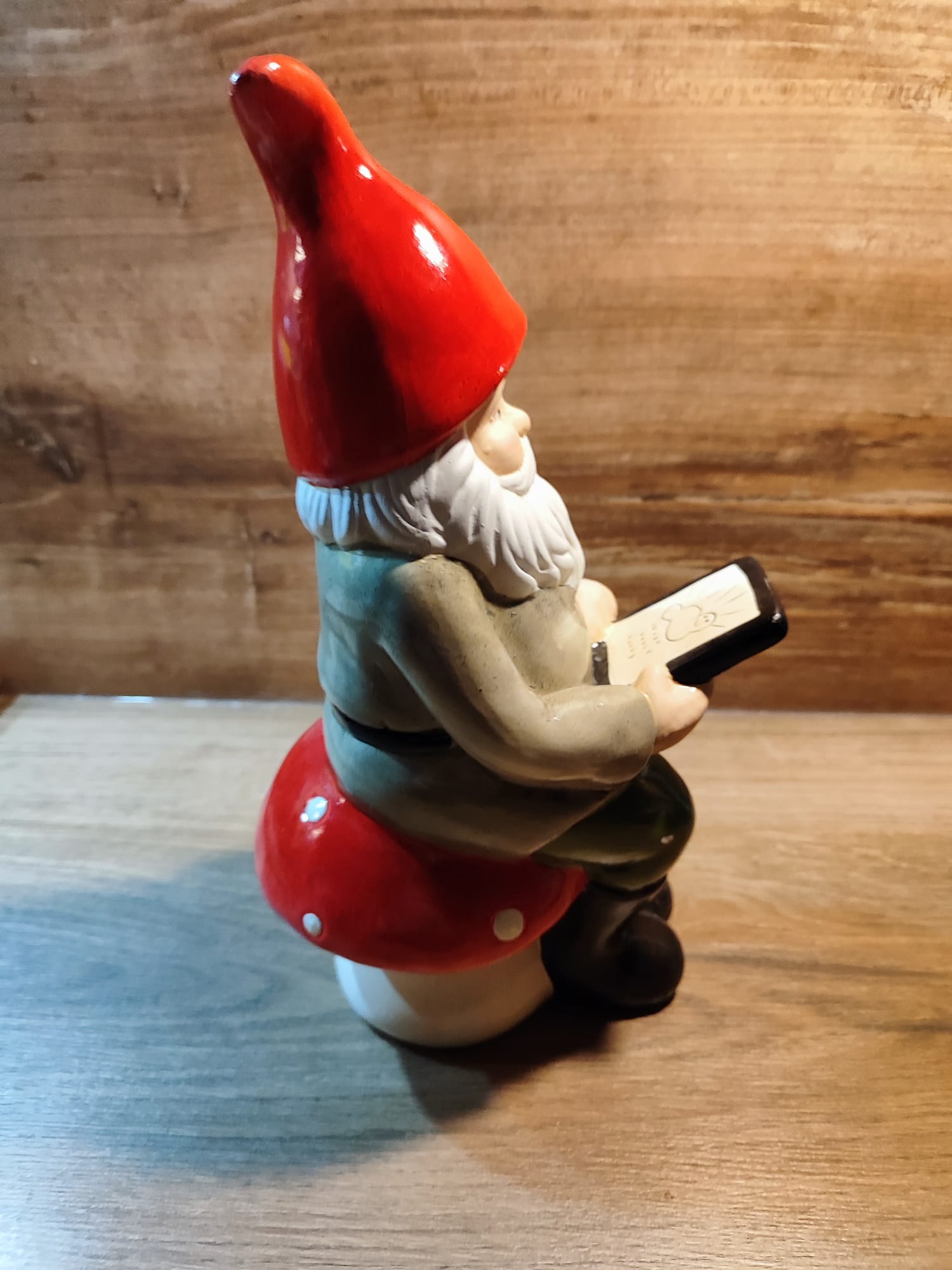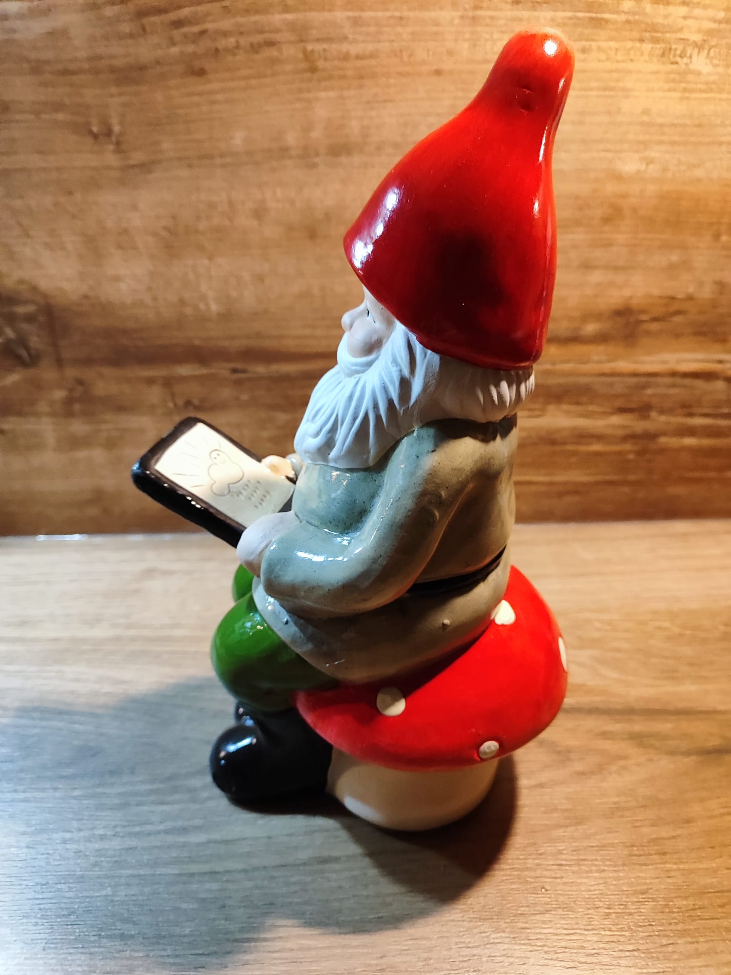 Gartenzwerg mit Tablet, Keramik, sitzend, tolles Design, 29cm