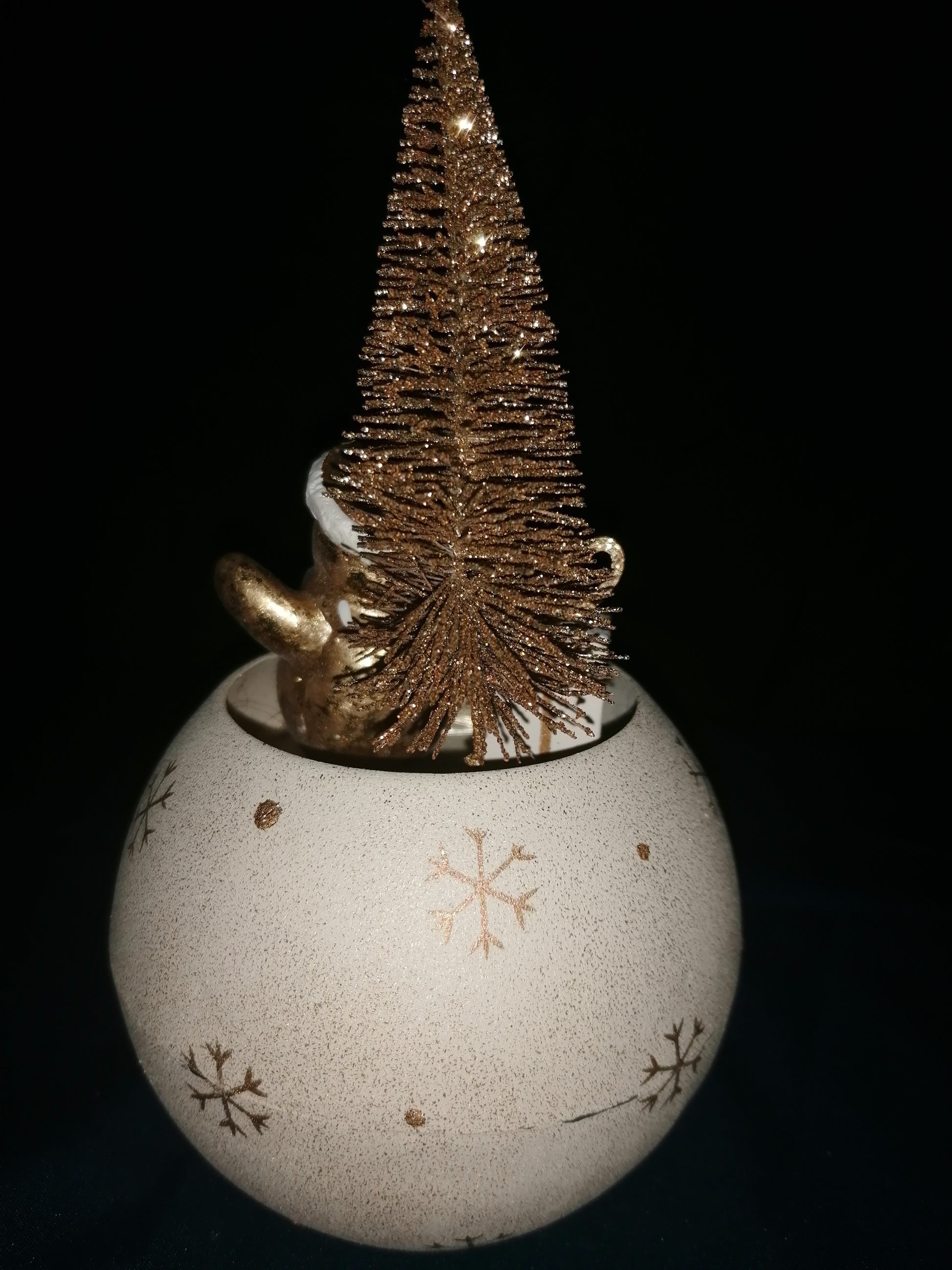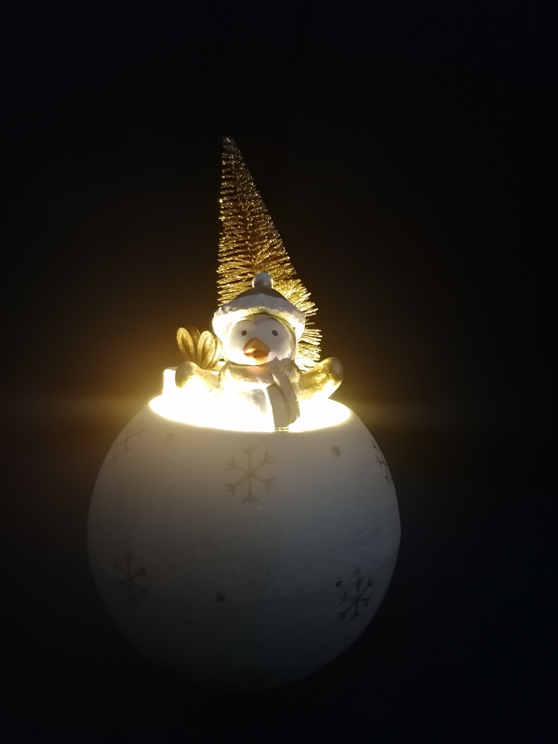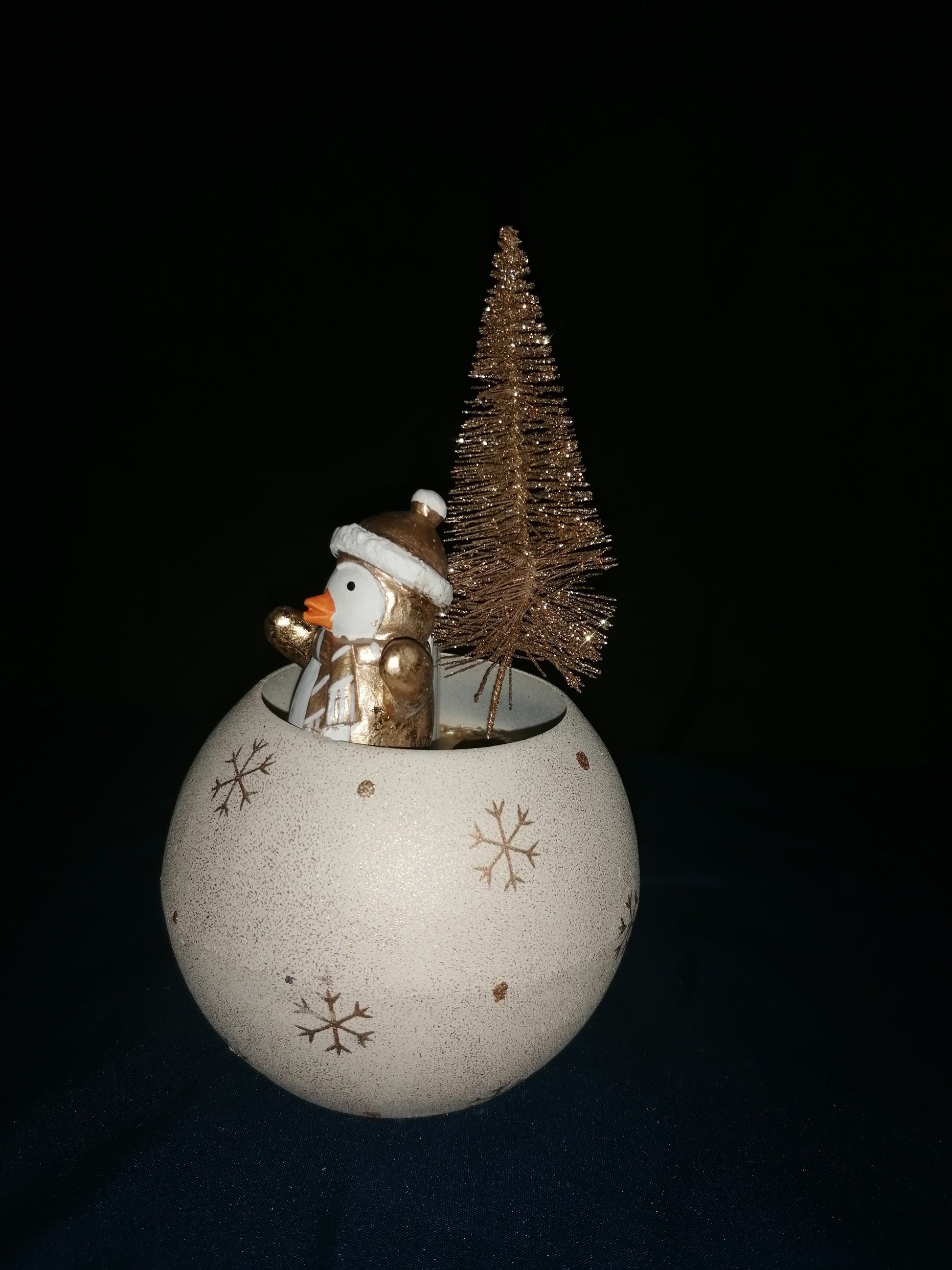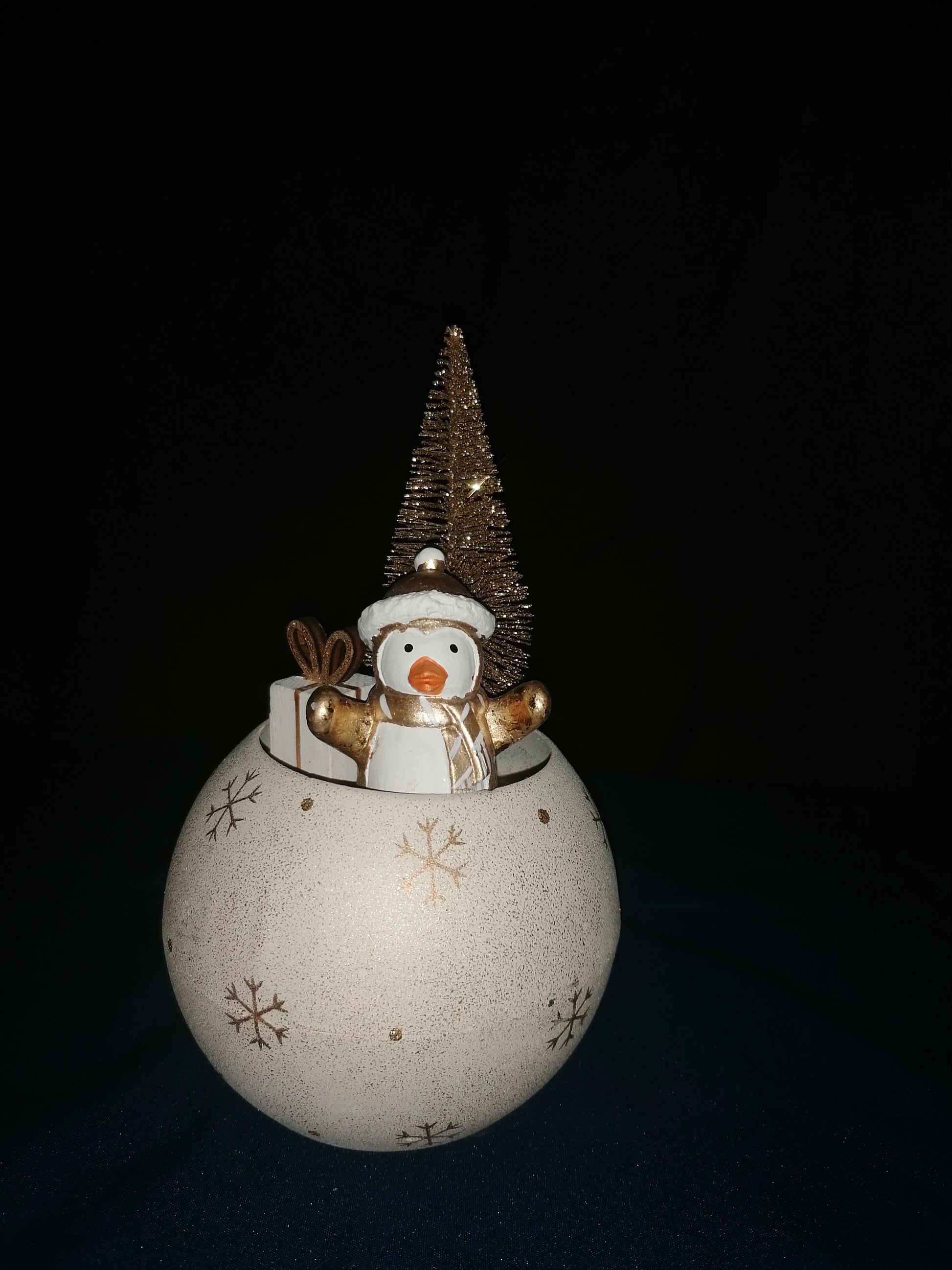 LED METALLKUGEL PINGUIN UND DEKO CREME GOLD größe 15 cm x 11 cm