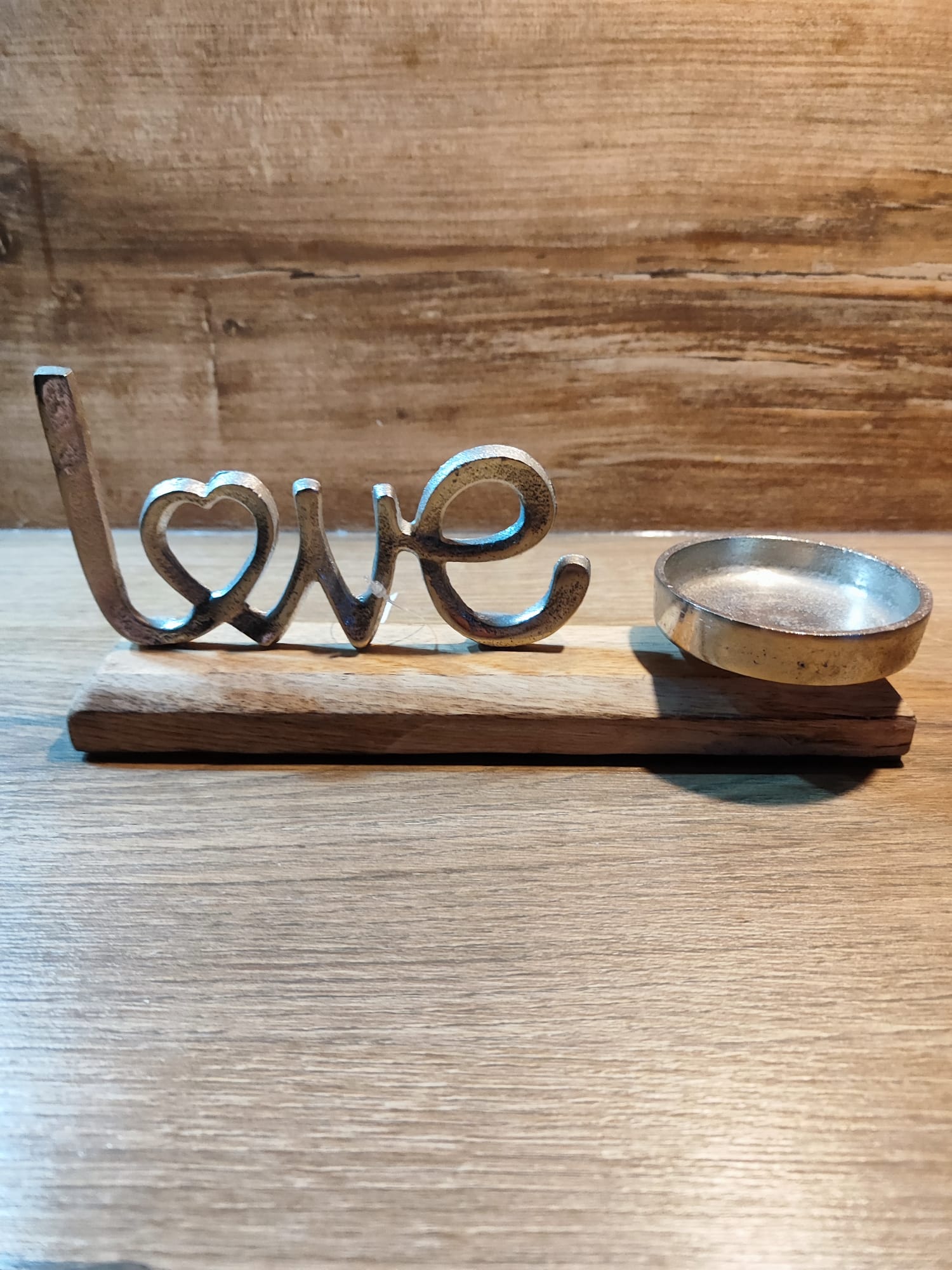 Love-Aufsteller mit Kerzenhalter/Mangoholz/Alu/ Valentinstag , perfektesGeschenk