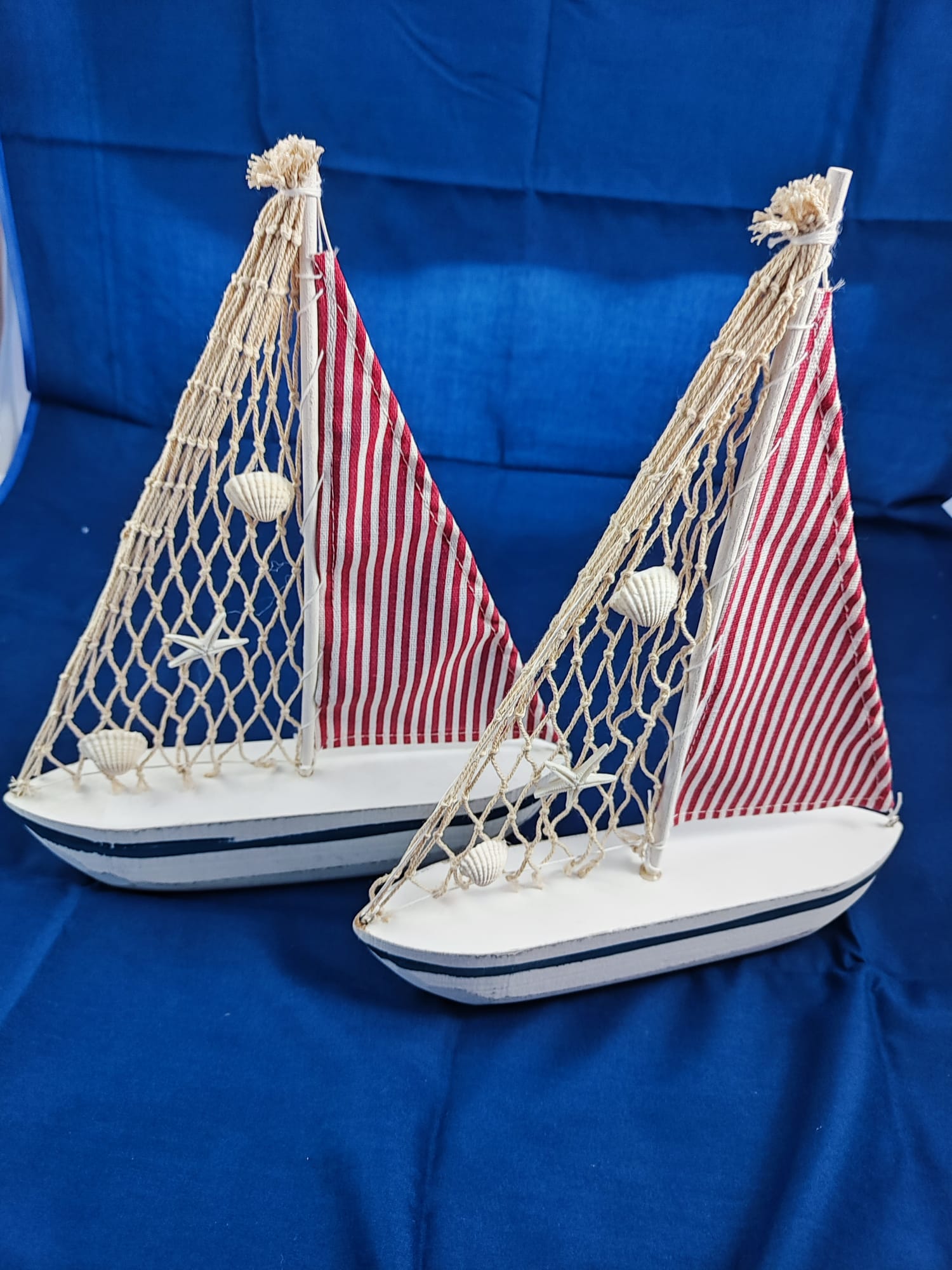 Maritim Deko Schiff aus Holz und Stoff rot/weiß 25cm