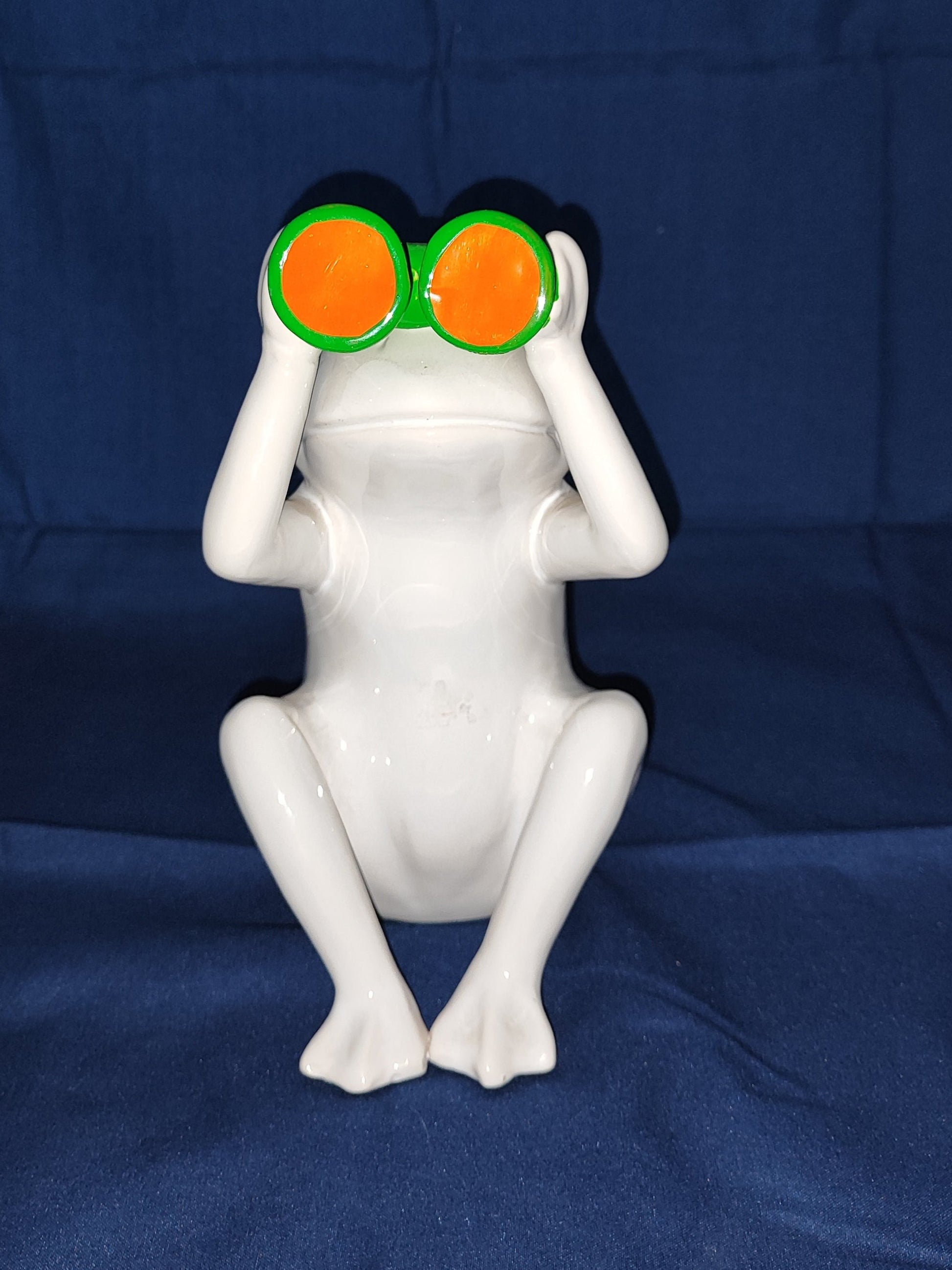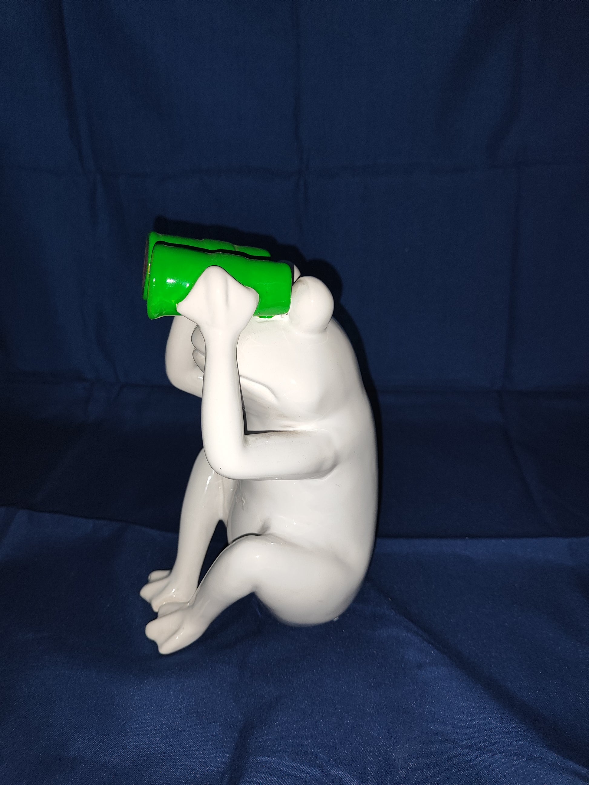 Sitzender Frosch mit Fernglas/ Keramik/ 20,5 cm