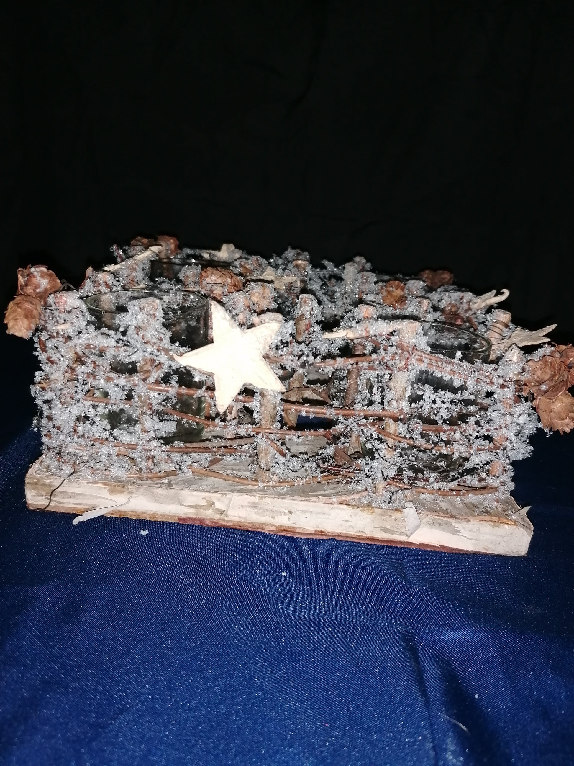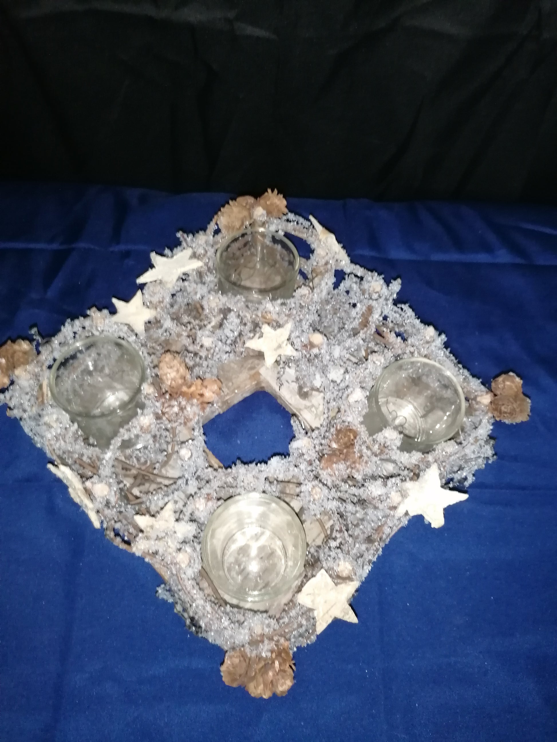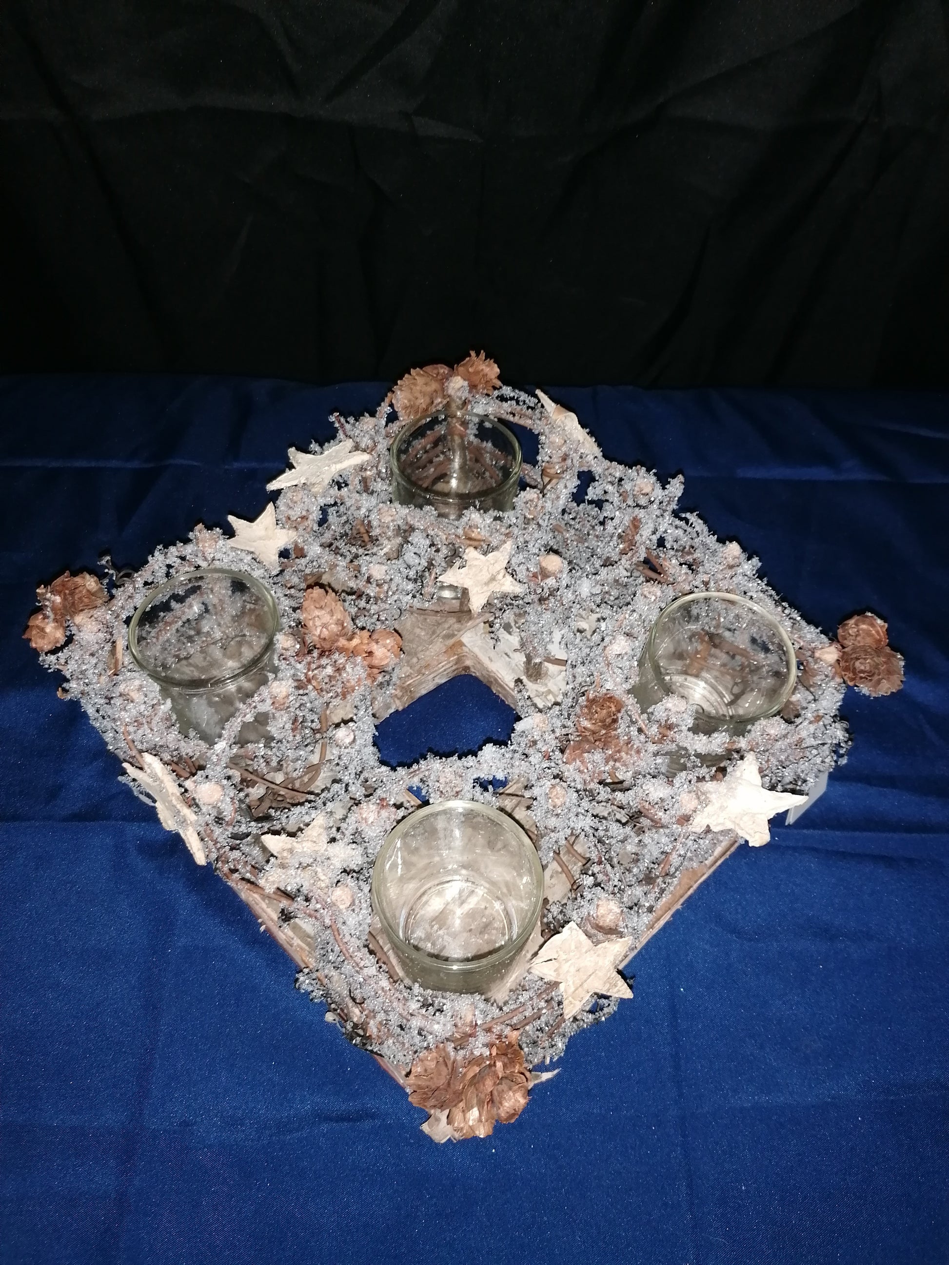 Weihnachtlicher Kranz/Teelicht/Holz/Glas/ Wiederverwendbar 22x22cm