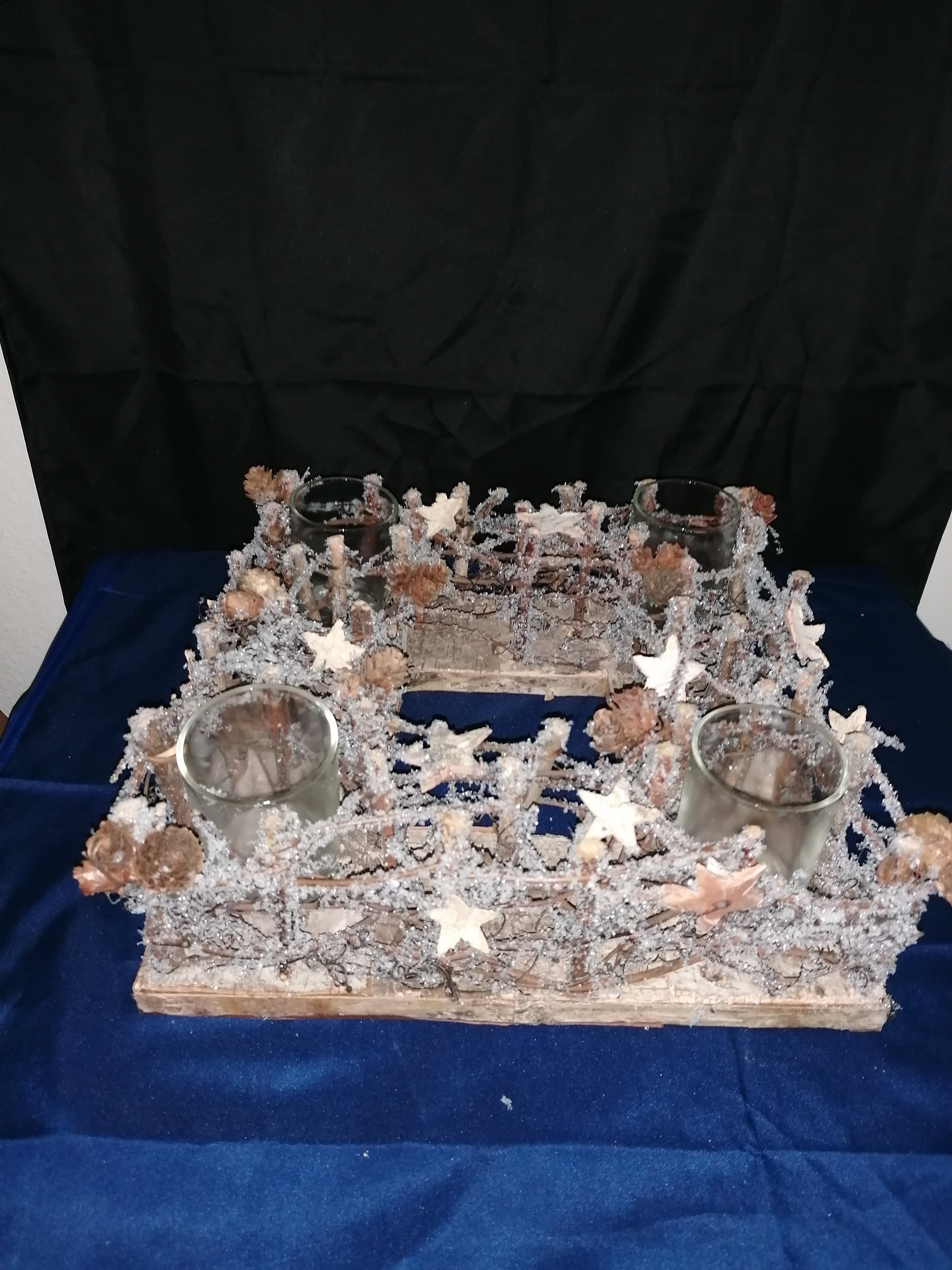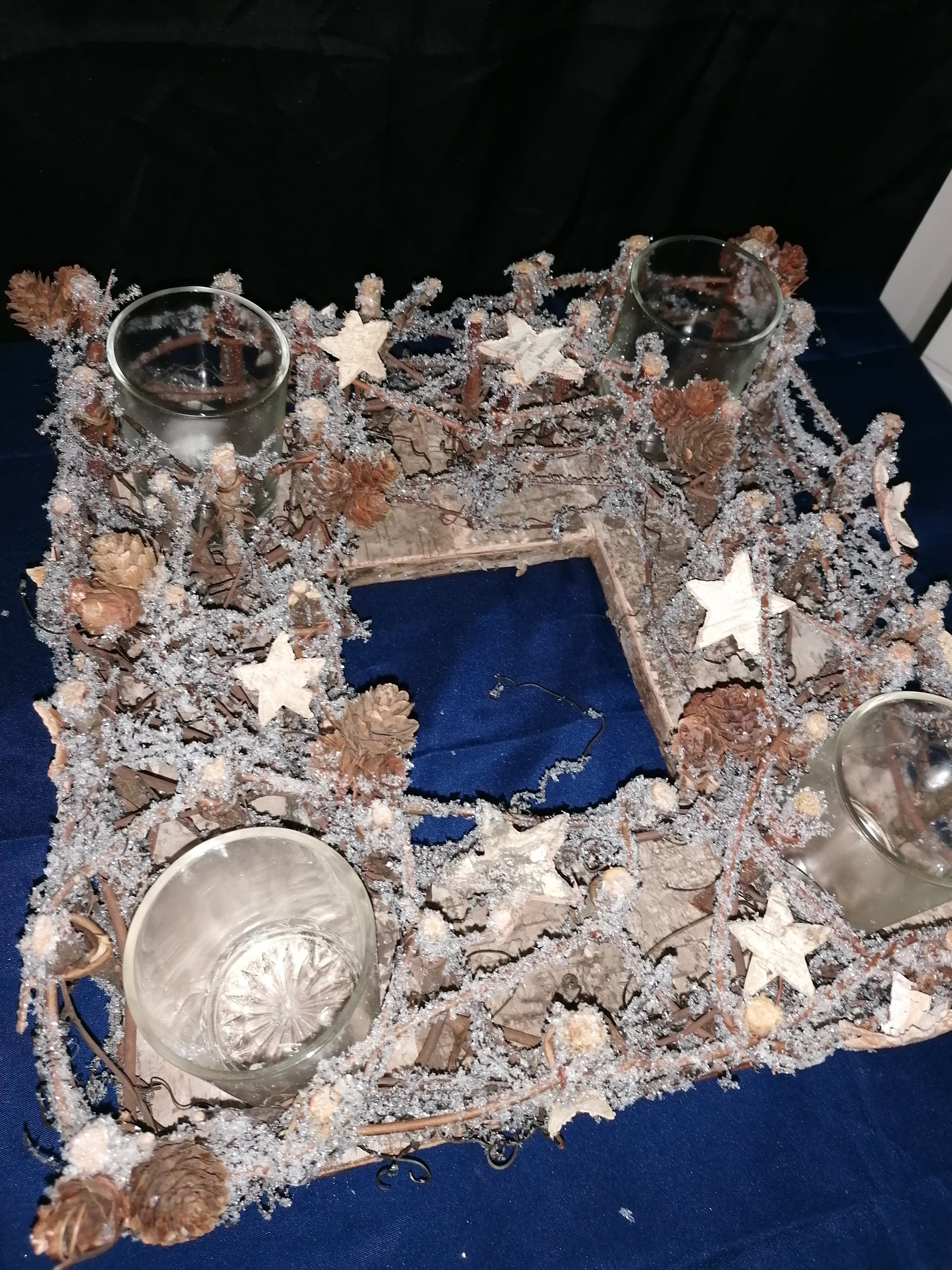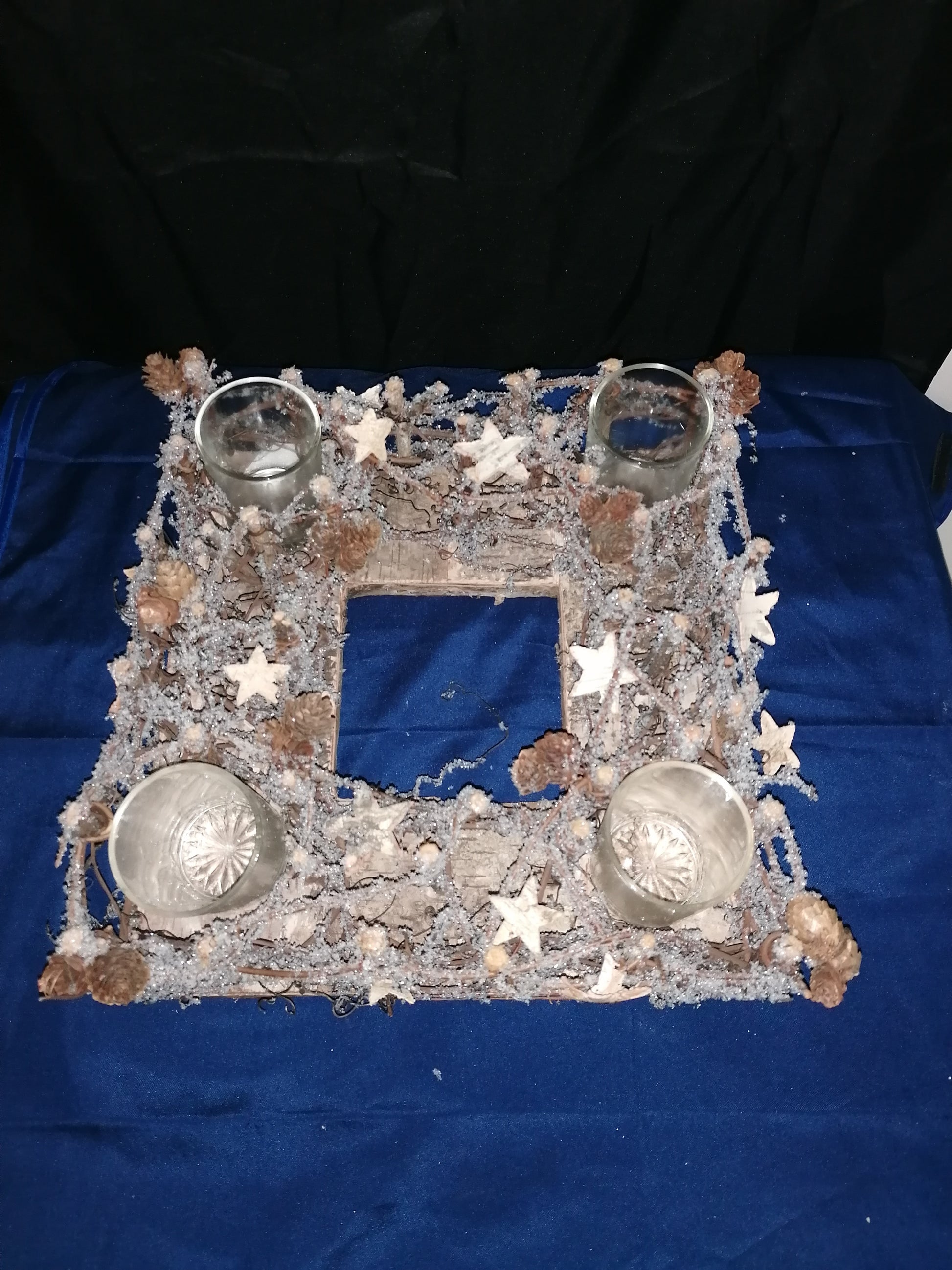 Weihnachtlicher Kranz/Teelicht/Holz/Glas/ Wiederverwendbar 33x33 cm